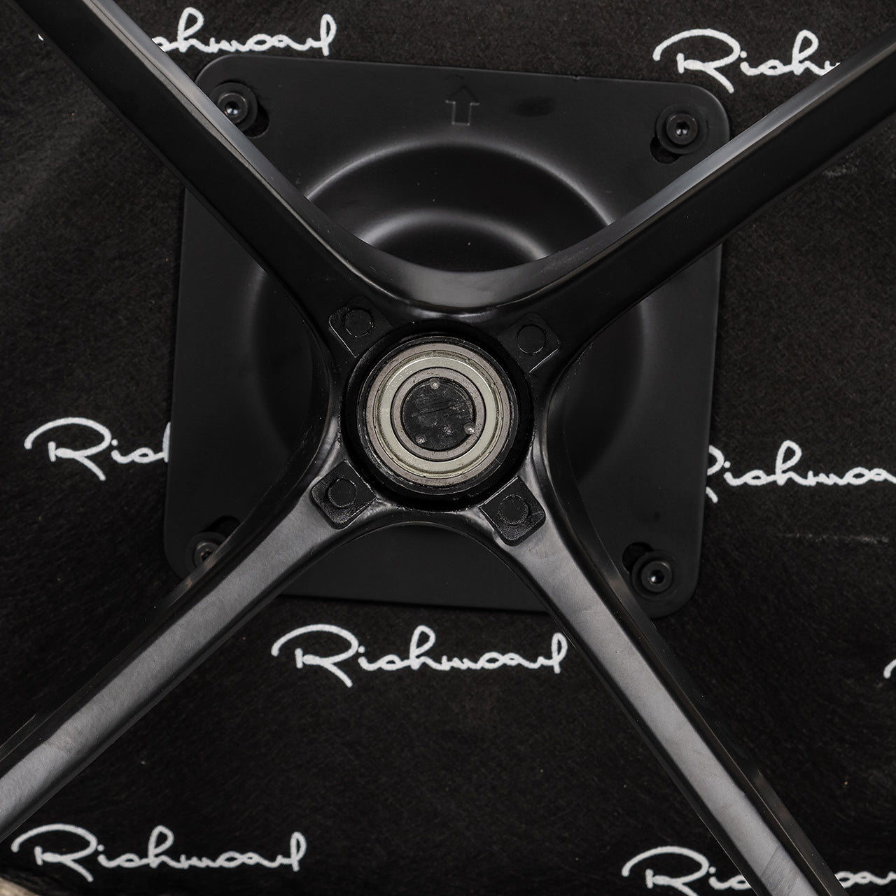 Onderstel: Zwart metalen draaivoet – 360° rotatie zonder te schuiven