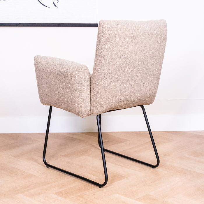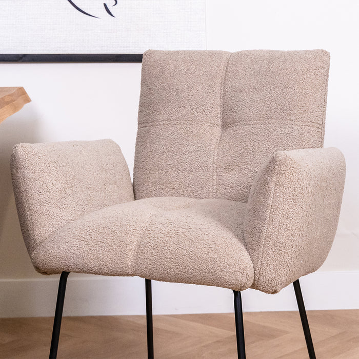 Eetkamerstoel Dante is een hippe eetkamerstoel in een populaire Teddy stof. Deze heerlijke zachte stof past perfect in een modern en chique interieur. Eetkamerstoel Dante is daarnaast ook nog eens uitgerust met een enorm dik gestoffeerde zitting, rugleuning en armleuningen. Dit geeft deze Teddy eetkamerstoel een bijzonder hoog knuffel gehalte. Want zeg nou eerlijk, wil jij niet direct op deze stoel gaan zitten nu je hem ziet?