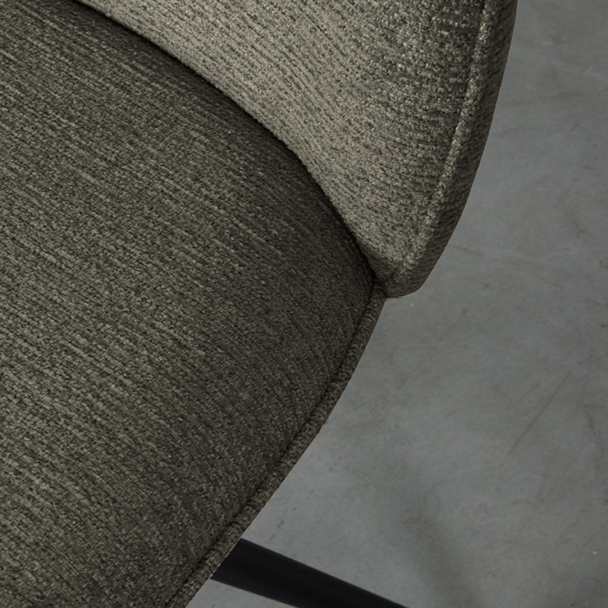 De Eetkamerstoel Finn is veelzijdig inzetbaar; perfect aan de eettafel, maar ook geschikt als bureaustoel of als accentstoel in de woonkamer. De combinatie van grijs bouclé en het zwarte metalen onderstel maakt deze stoel tot een stijlvolle toevoeging aan elk interieur