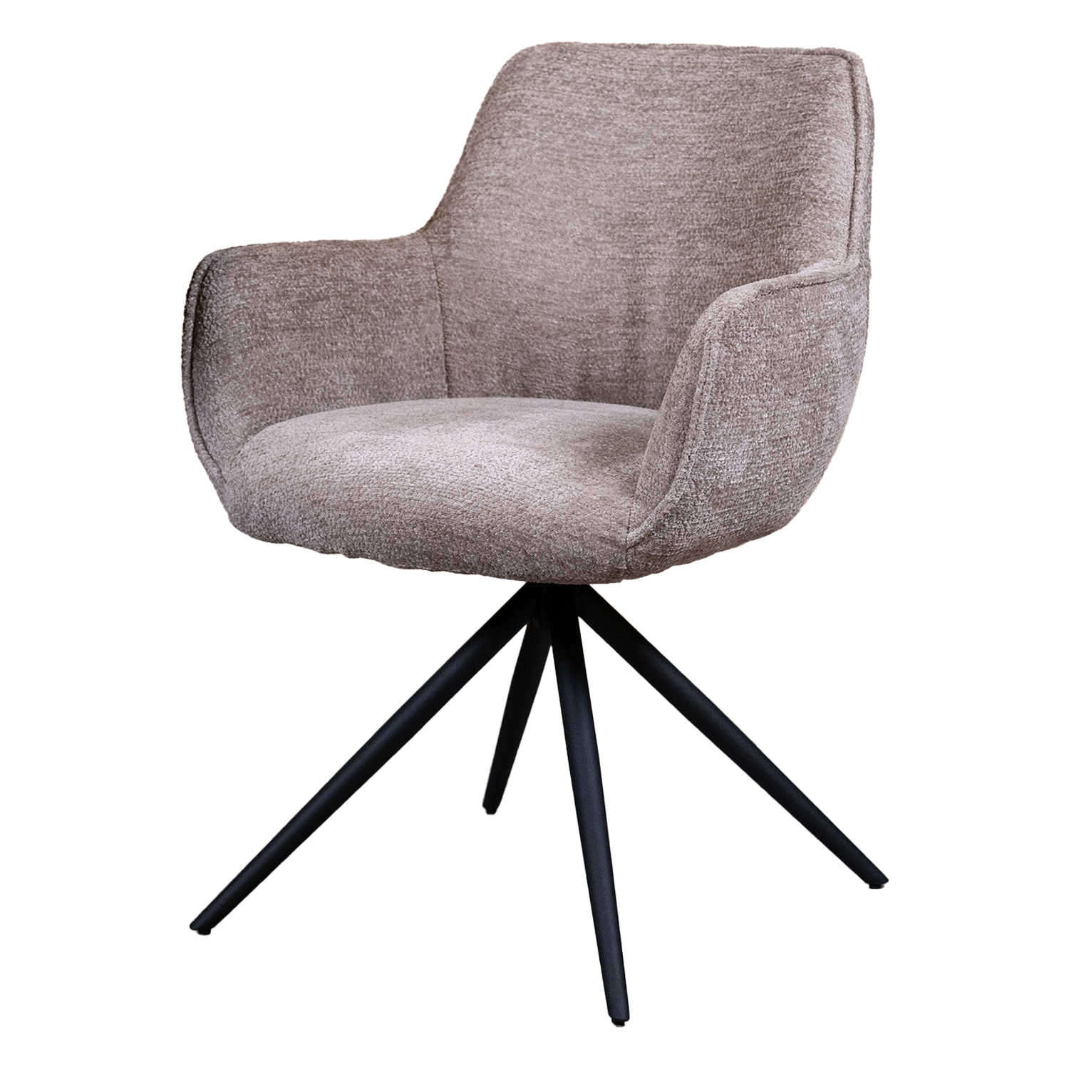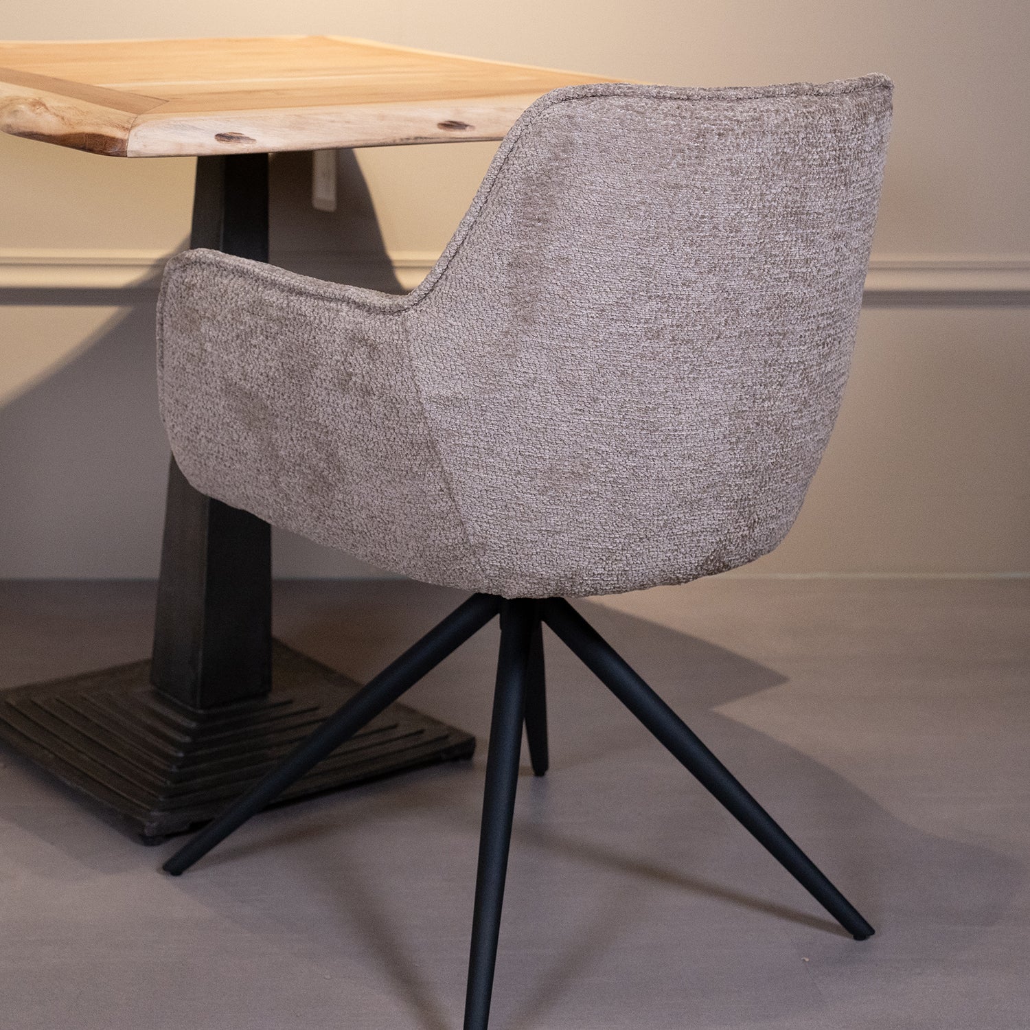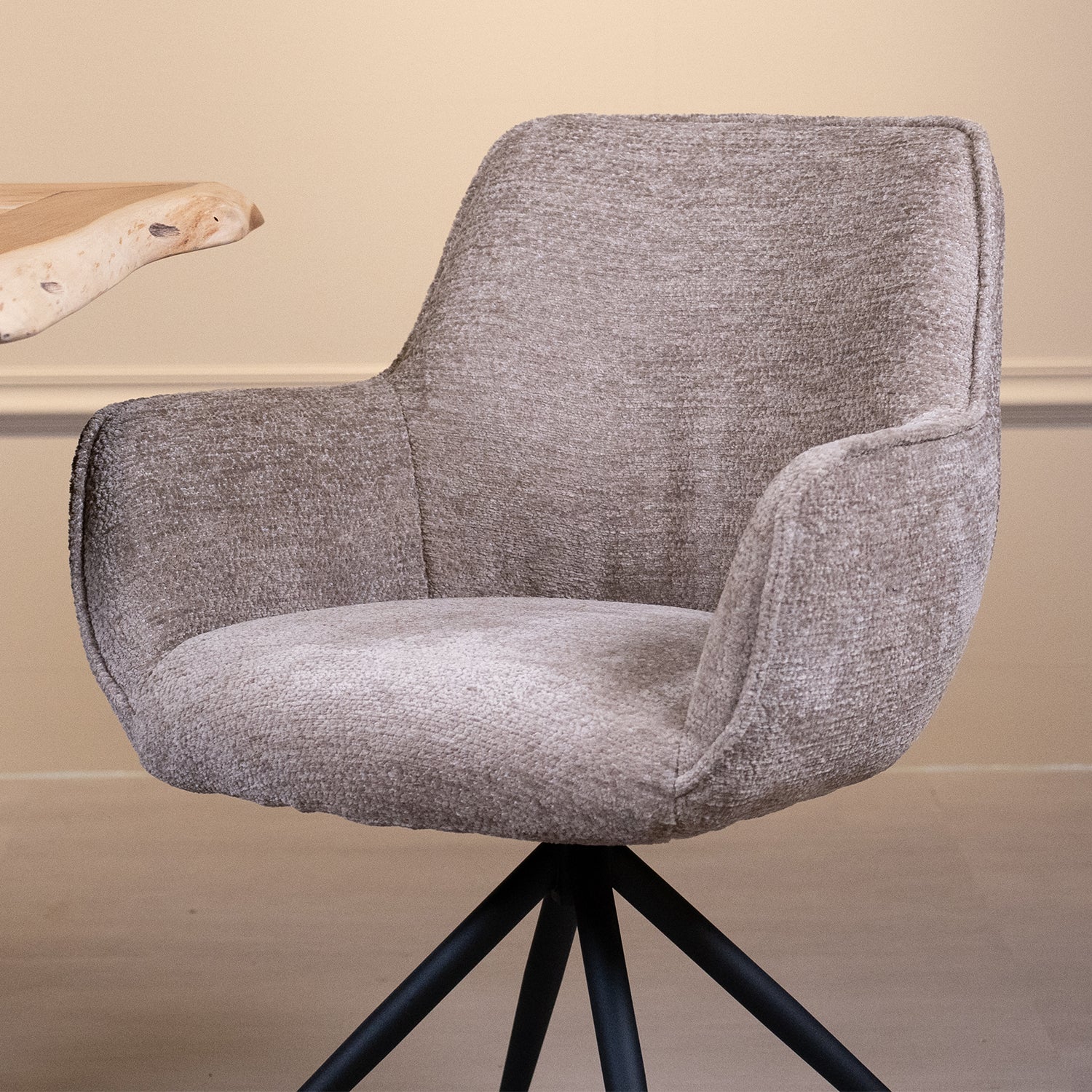 Deze draaibare eetkamerstoel met armleuningen is niet alleen een praktische toevoeging aan je interieur, maar ook perfect te combineren met veel van onze andere meubels.