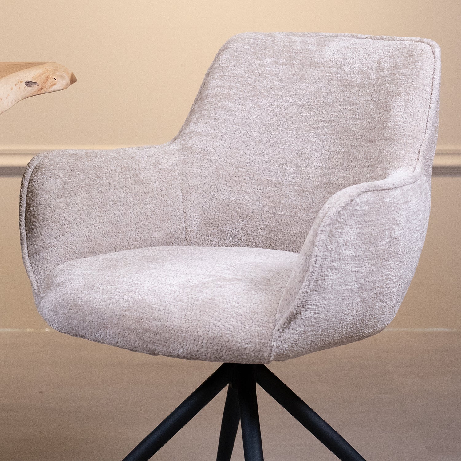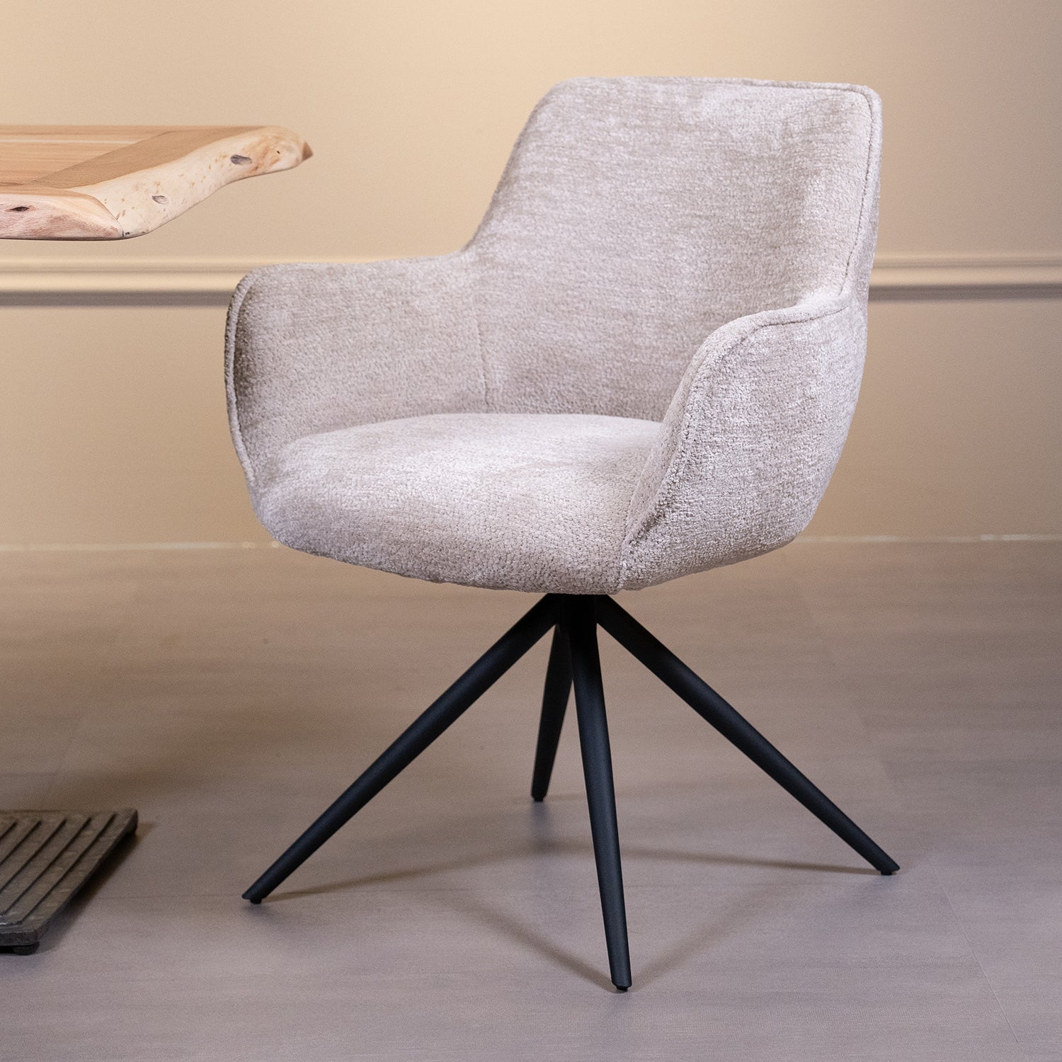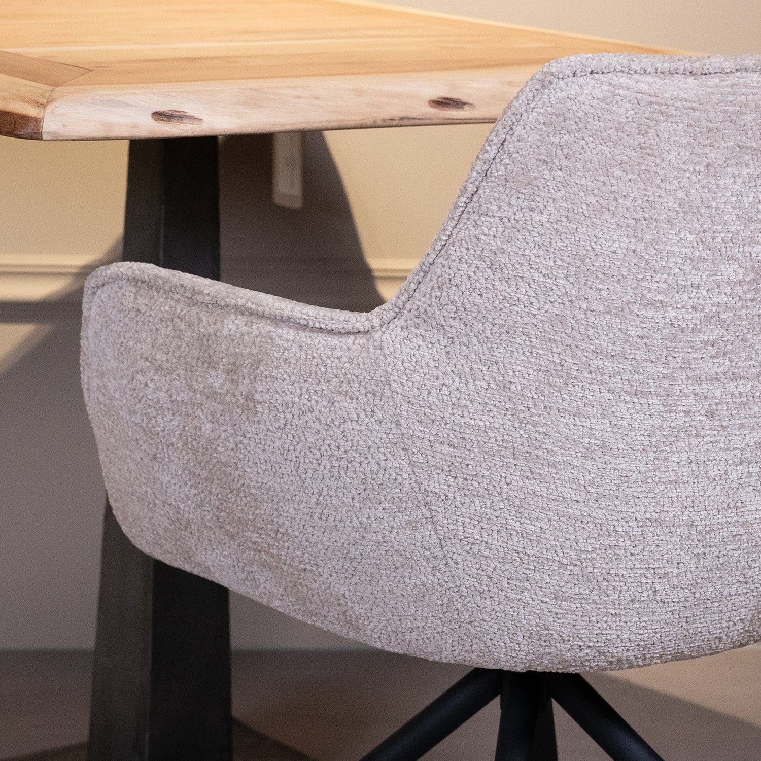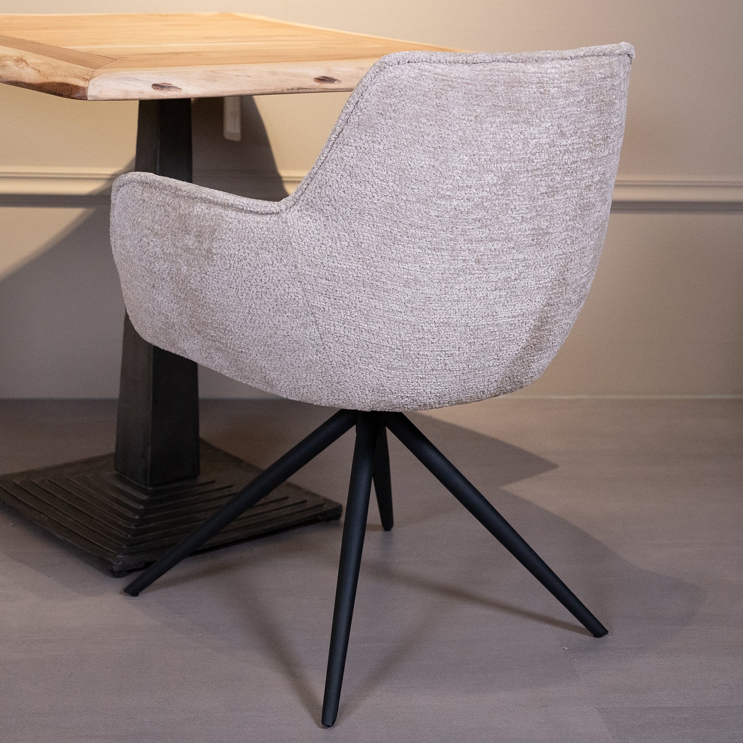 Deze draaibare eetkamerstoel met armleuningen is niet alleen een praktische toevoeging aan je interieur, maar ook perfect te combineren met veel van onze andere meubels.