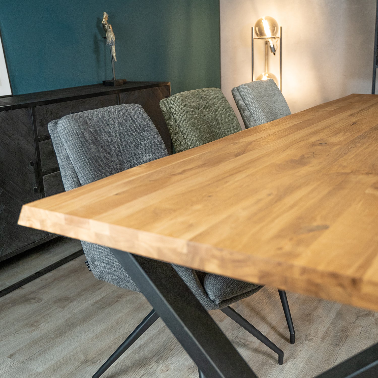 Deze eetkamerstoel met armleuning is met uiterste zorg voorzien van bekleding van hoogwaardige geweven stof. Geweven stoffen bieden een robuuste uitstraling, maar tegelijkertijd een zachte touch aan uw stoel. Ze creëren een warm en comfortabel gevoel.
