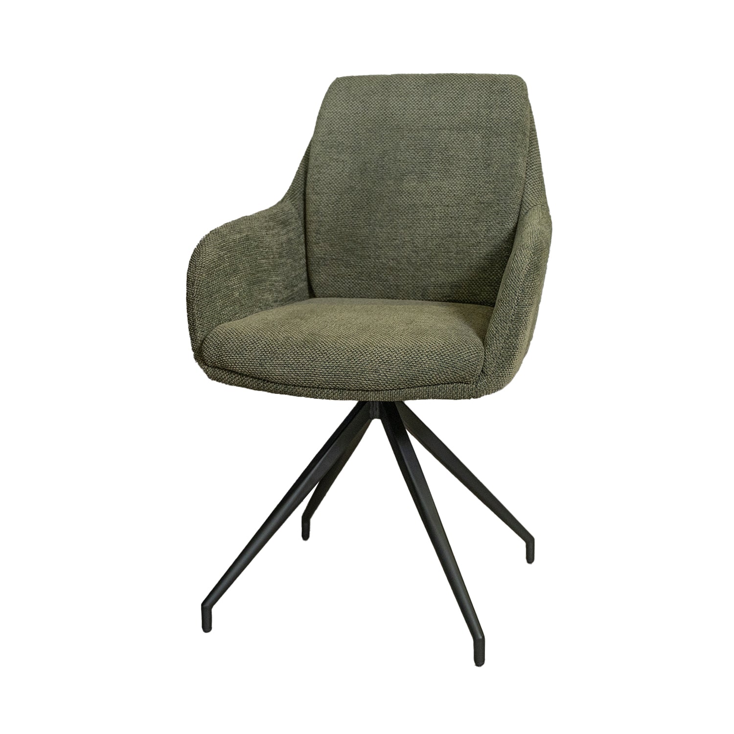 Maak kennis met de Eetkamerstoel Icon in Groen Woven. Deze eetkamerstoel biedt heerlijk zitcomfort bij de eettafel. De zachte bekleding en armleuningen resulteren in aangename stoel en een optimale zitpositie. Het metalen onderstel is stevig en zwart afgewerkt.