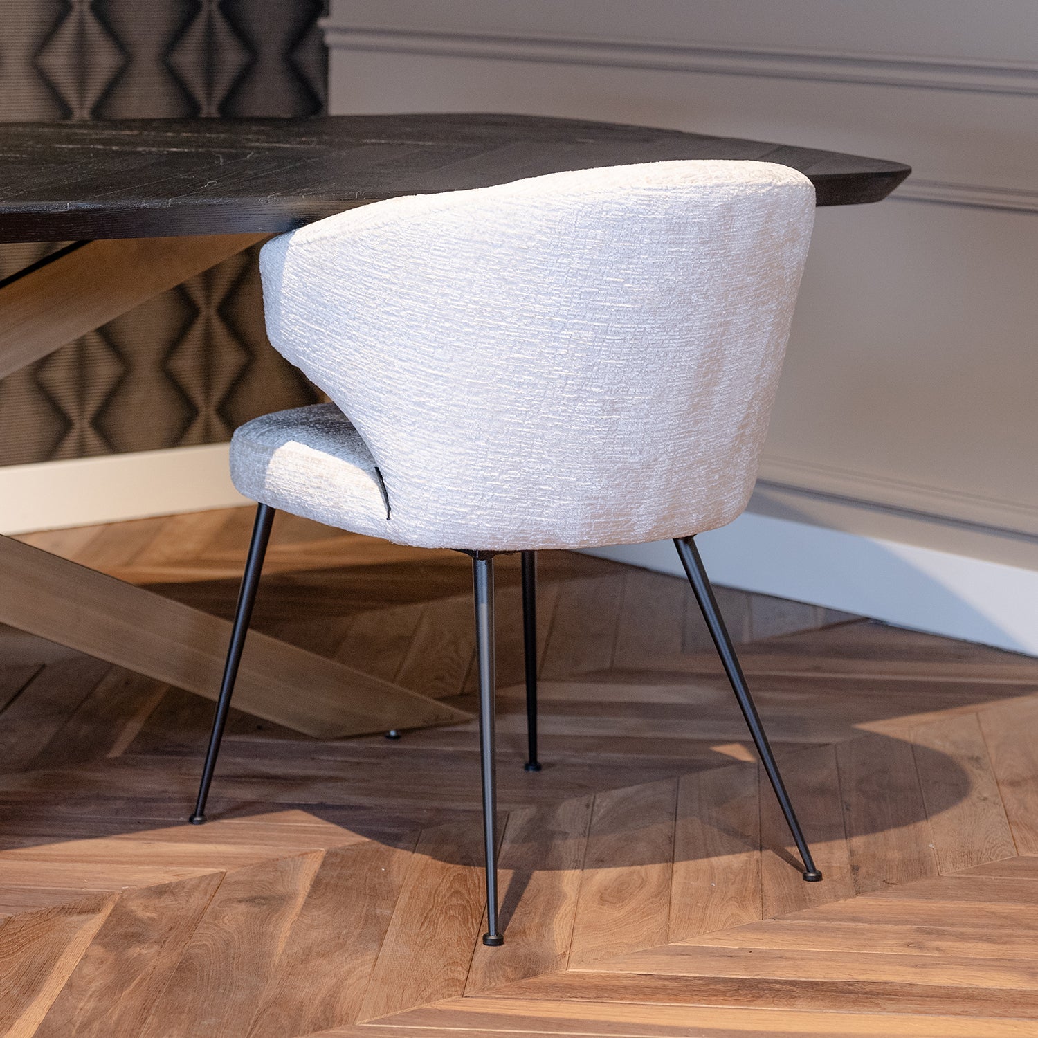 De eetkamerstoel is een prachtige bouclé stoel die perfect past in jouw modern interieur. De stoel is gemakkelijk te combineren met andere meubels. Zo is deze moderne eetkamerstoel ideaal als je op zoek bent naar een comfortabele en stijlvolle stoel voor in jouw woonkamer, eetkamer of kantoor.