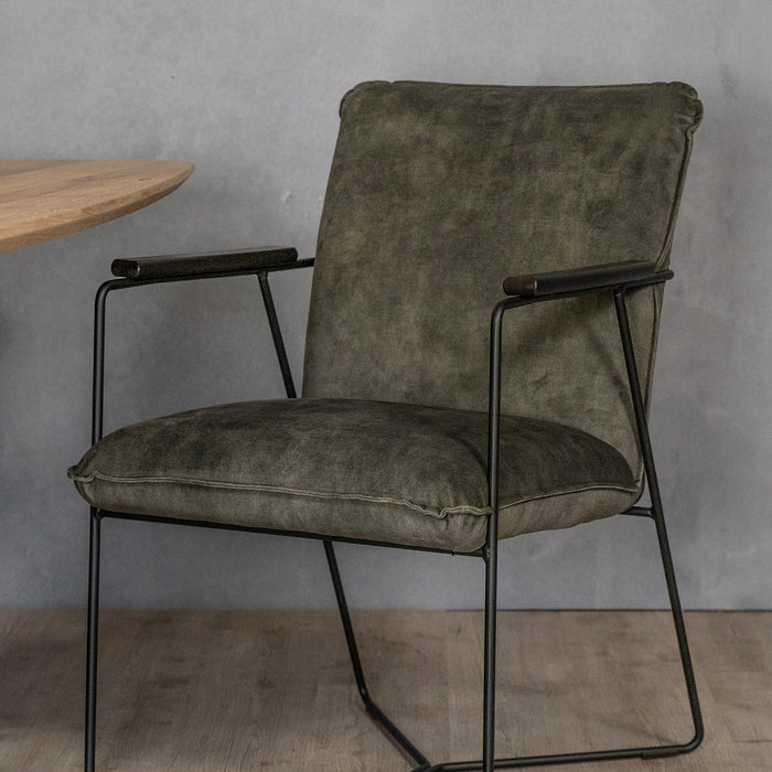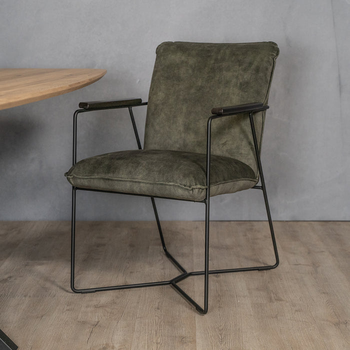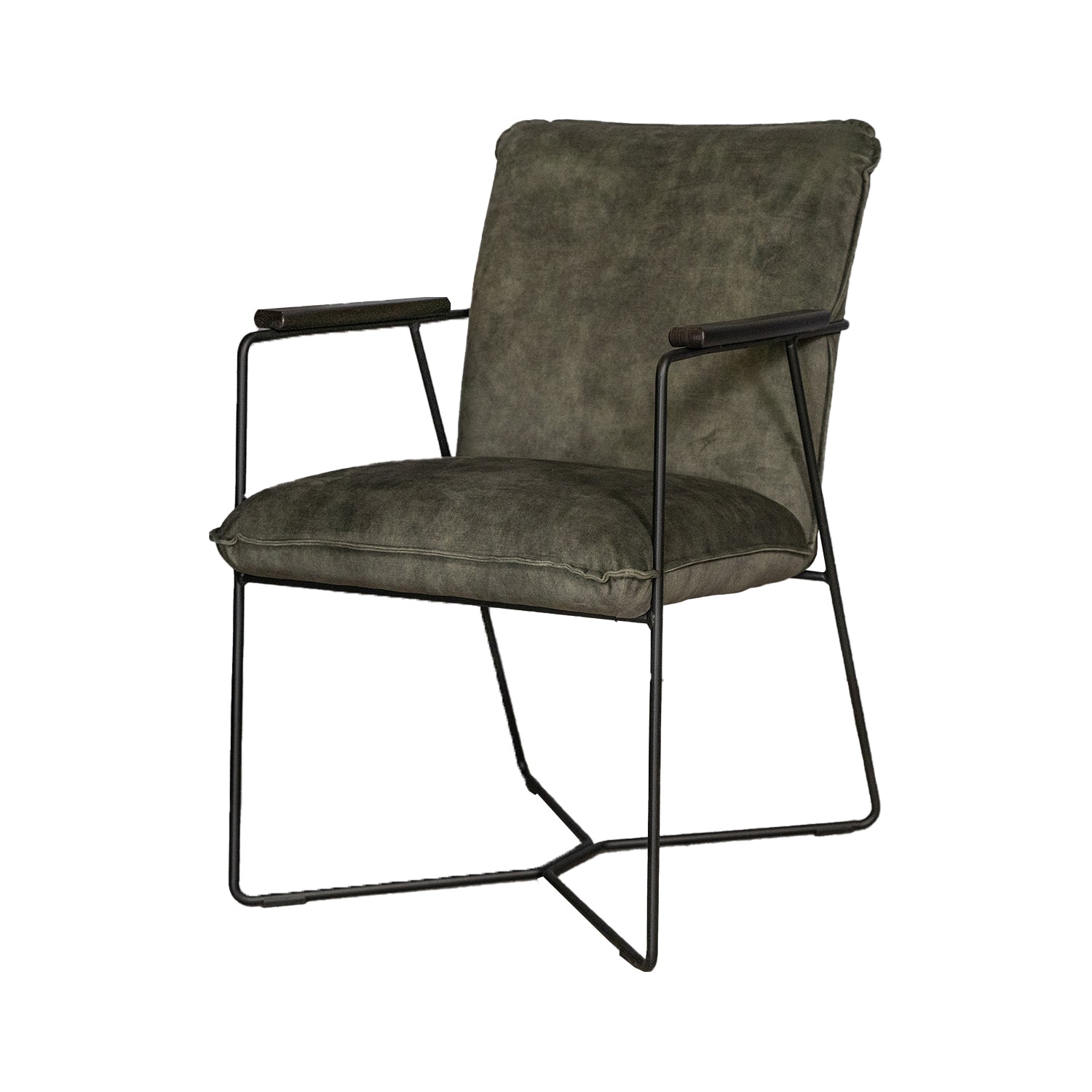 Uitmuntend comfort aan de eettafel heb je met deze prachtige eetkamerstoel. De zachte stoffering biedt heerlijk zitgemak en de armleuningen zijn extra prettig. Het metalen frame is stevig en heeft een uniek modern design.