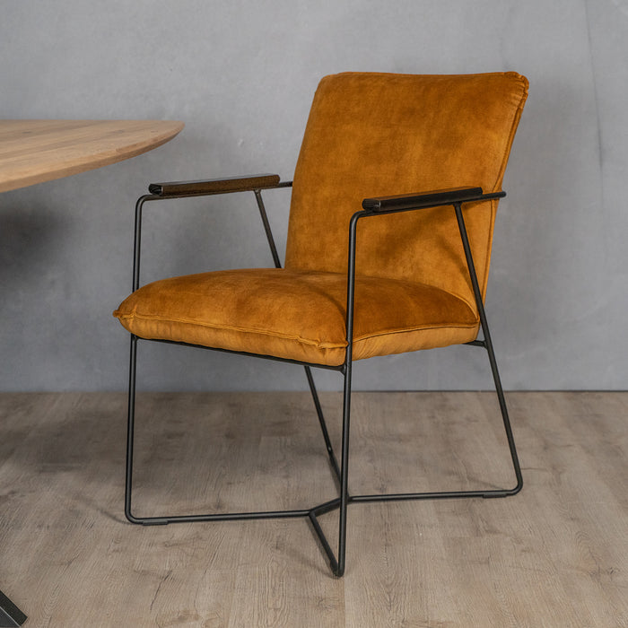 Uitmuntend comfort aan de eettafel heb je met deze prachtige eetkamerstoel. De zachte stoffering biedt heerlijk zitgemak en de armleuningen zijn extra prettig. Het metalen frame is stevig en heeft een uniek modern design.