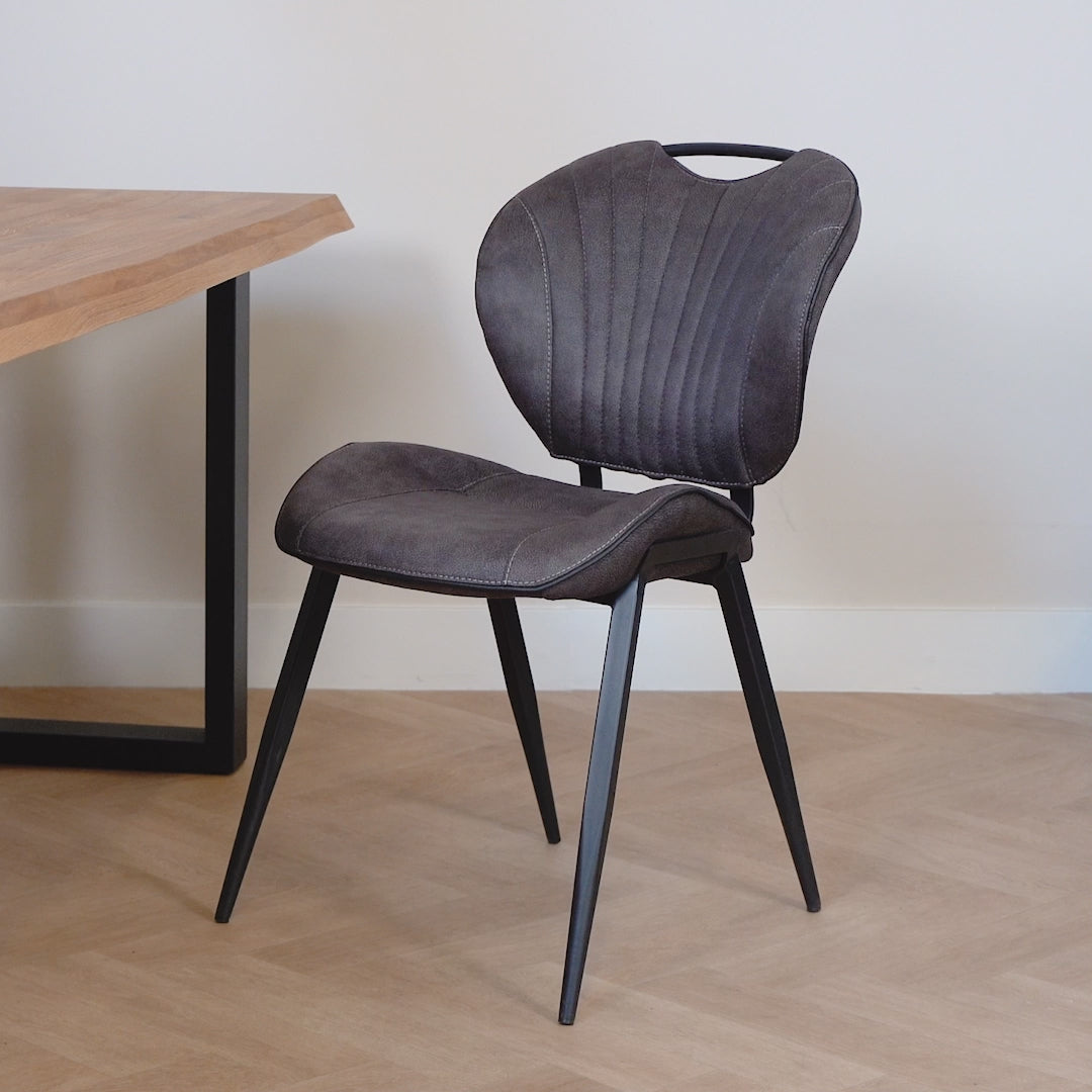 Eetkamerstoel Jim is de perfecte stijlvolle eetkamerstoel voor aan jouw eettafel. Dit model je uitgevoerd zonder armleuningen en heeft een kleine opening tussen het zitvlak en de rugleuning. Hierdoor heeft de stoel een hele open uitstraling en oogt hij erg ruimtelijk.