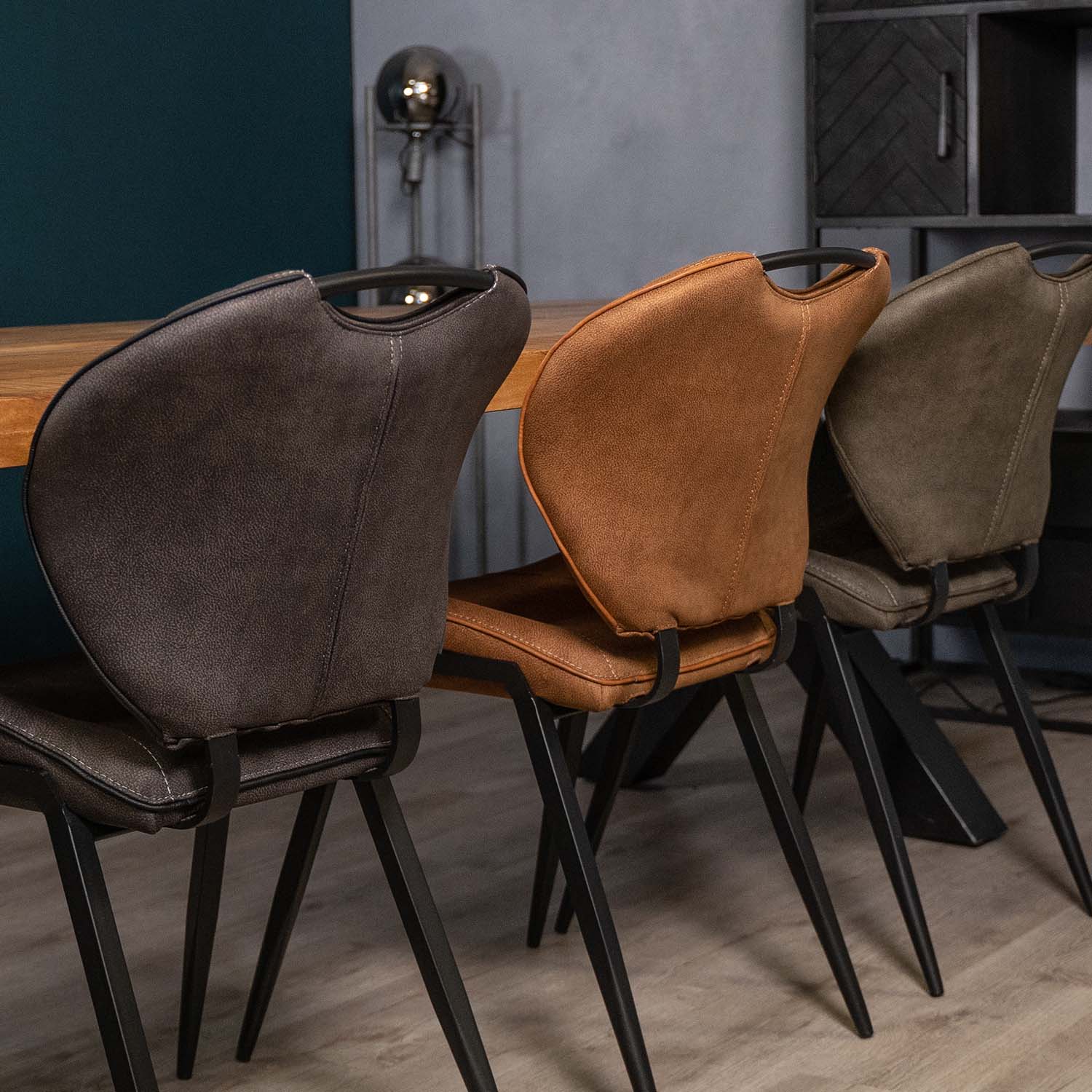 Eetkamerstoel Jim is de perfecte stijlvolle eetkamerstoel voor aan jouw eettafel. Dit model je uitgevoerd zonder armleuningen en heeft een kleine opening tussen het zitvlak en de rugleuning. Hierdoor heeft de stoel een hele open uitstraling en oogt hij erg ruimtelijk.