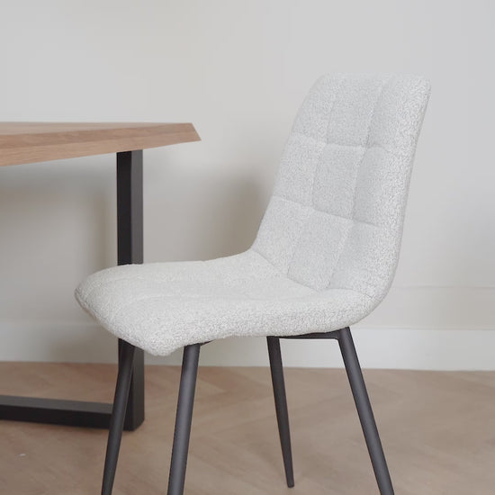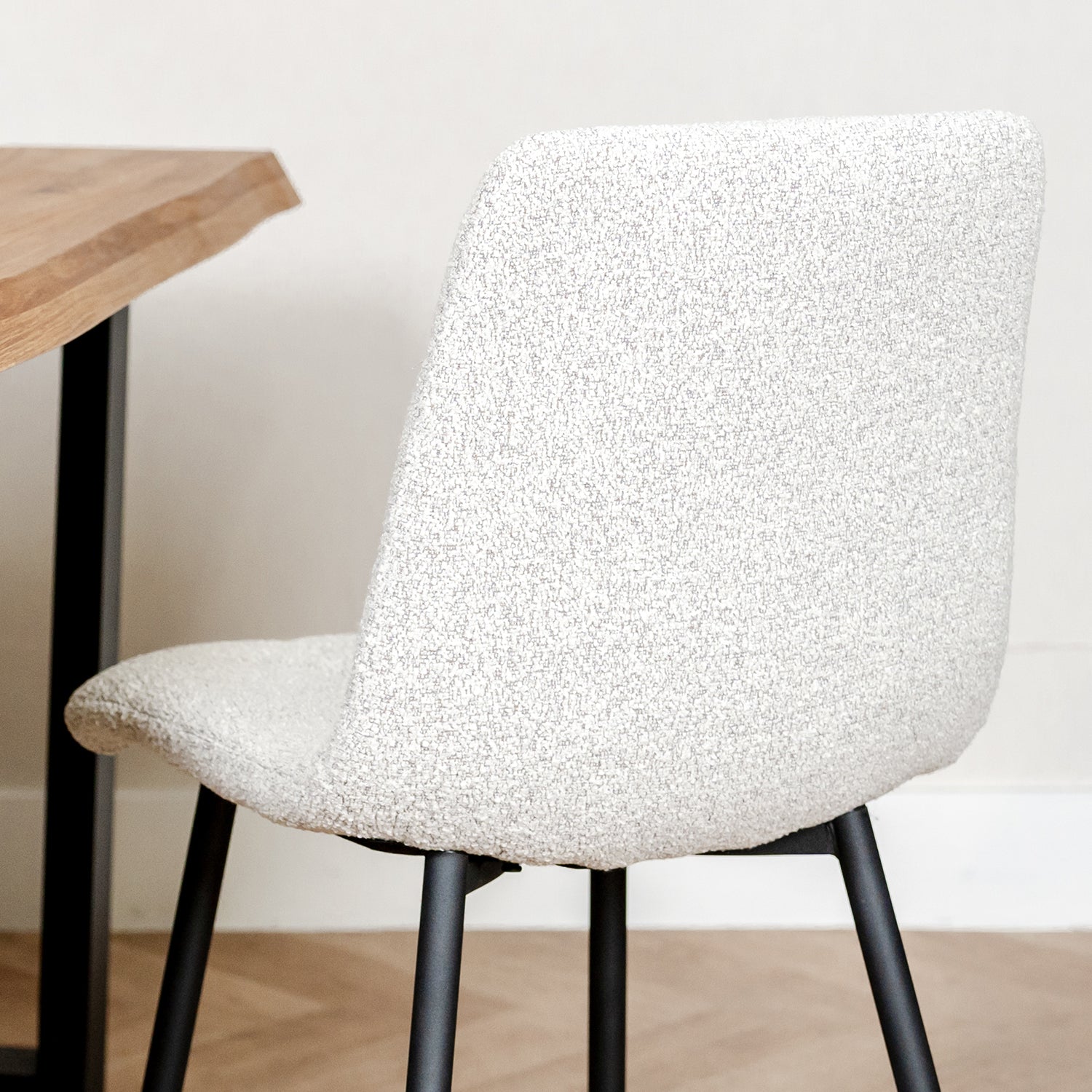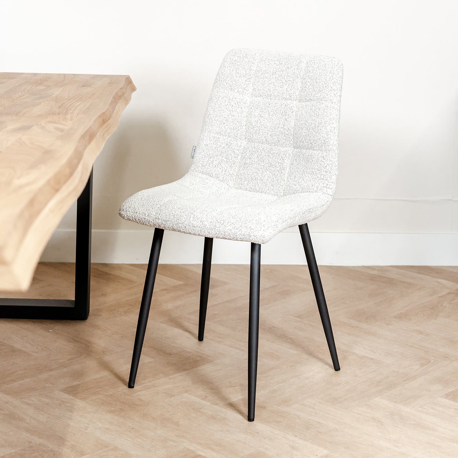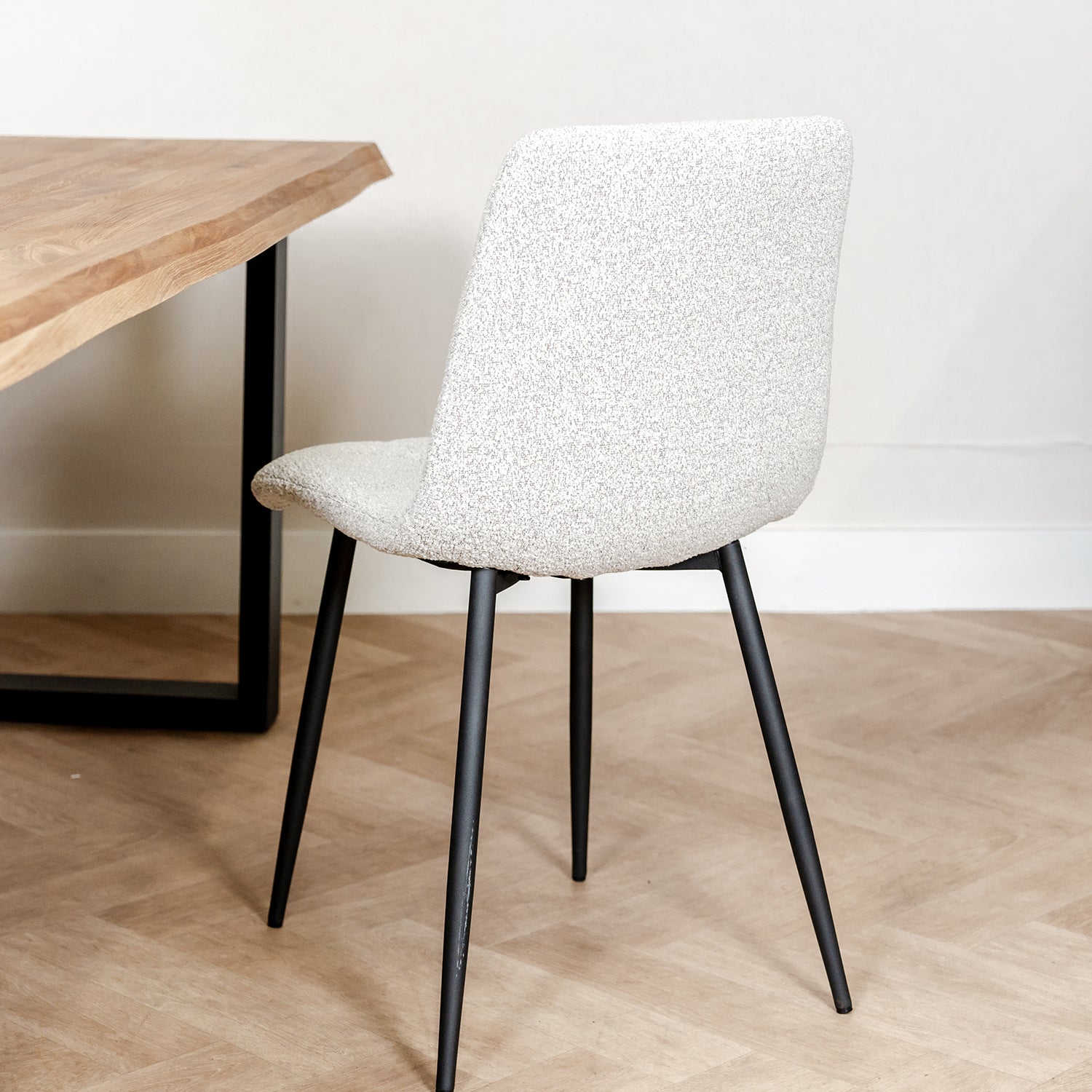 De zwarte, naar buiten staande poten zorgen ervoor dat de stoel lekker stabiel op de grond staat en geeft daarnaast een leuke speelse touch. Dit samen maakt Eetkamerstoel Juul perfect voor een lange zit; kom maar op met dat uitgebreide diner!