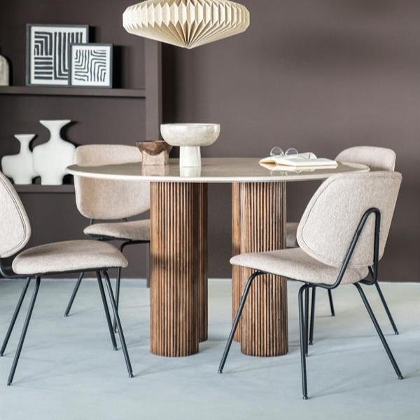 Het gebruik van duurzaam polyester zorgt ervoor dat de stoel makkelijk te onderhouden is en lang mooi blijft. De zachte kleuren beige en grijs geven een rustige en tijdloze uitstraling, terwijl de roze variant een speelse en frisse touch toevoegt aan je eetkamer. De eetkamerstoel Lynn is de ideale keuze voor wie op zoek is naar een combinatie van esthetiek en functionaliteit.