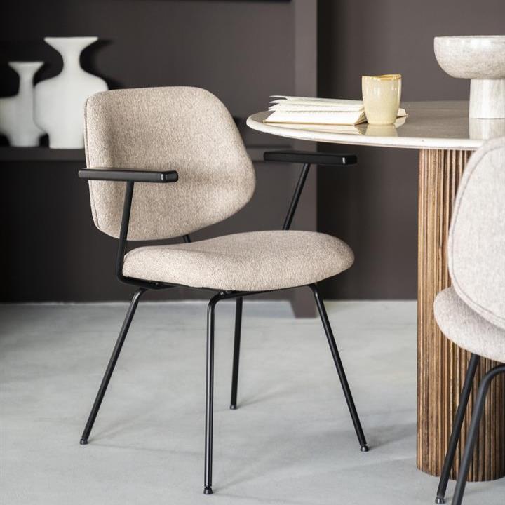 De eetkamerstoel Lynn biedt de perfecte balans tussen comfort en modern design. Of je nu kiest voor een subtiele beige tint of de opvallende roze variant, deze stoel is een stijlvolle en praktische keuze voor elke ruimte. De armleuningen en zachte bekleding zorgen ervoor dat je gasten zich altijd op hun gemak voelen, terwijl de strakke vormgeving een moderne sfeer toevoegt aan je interieur.