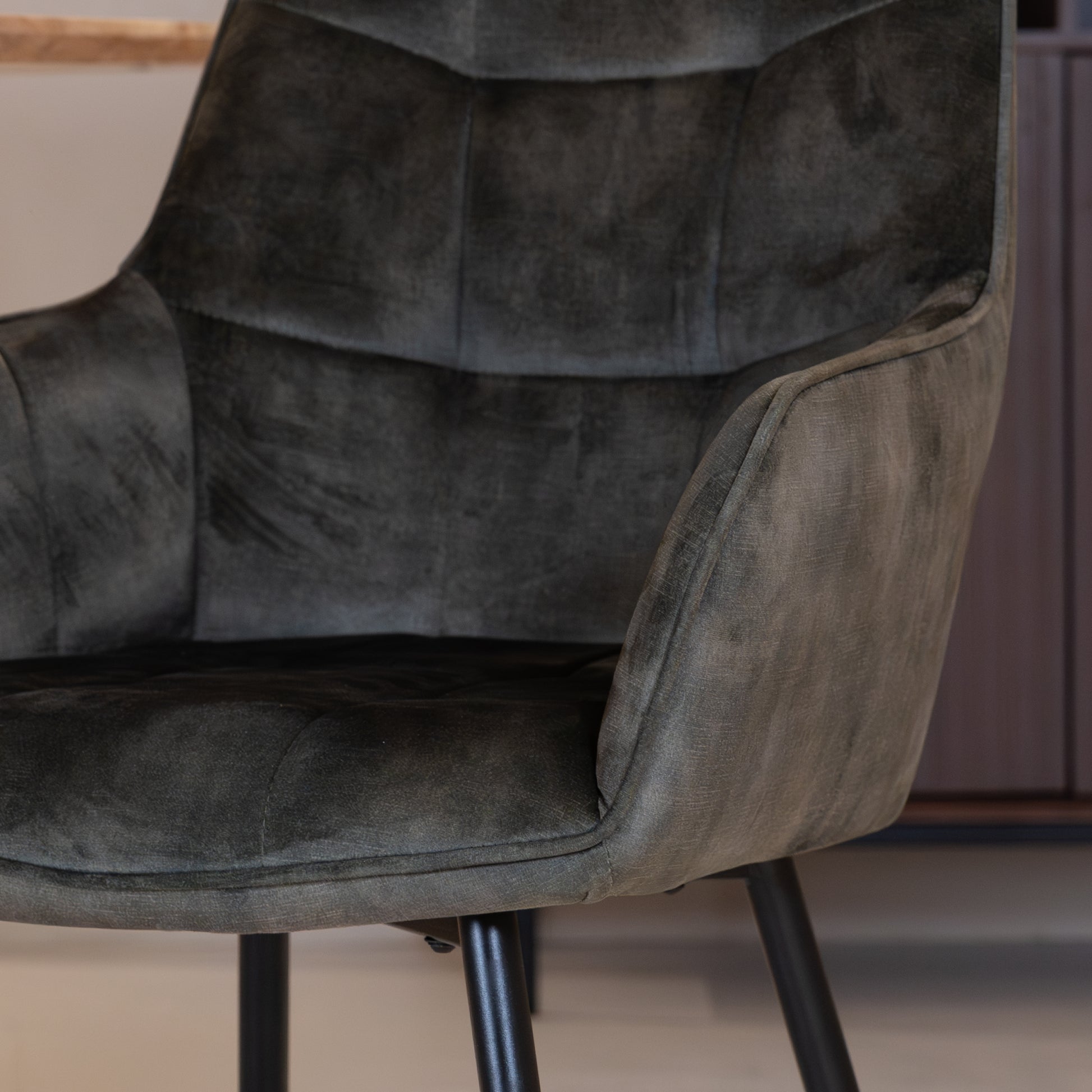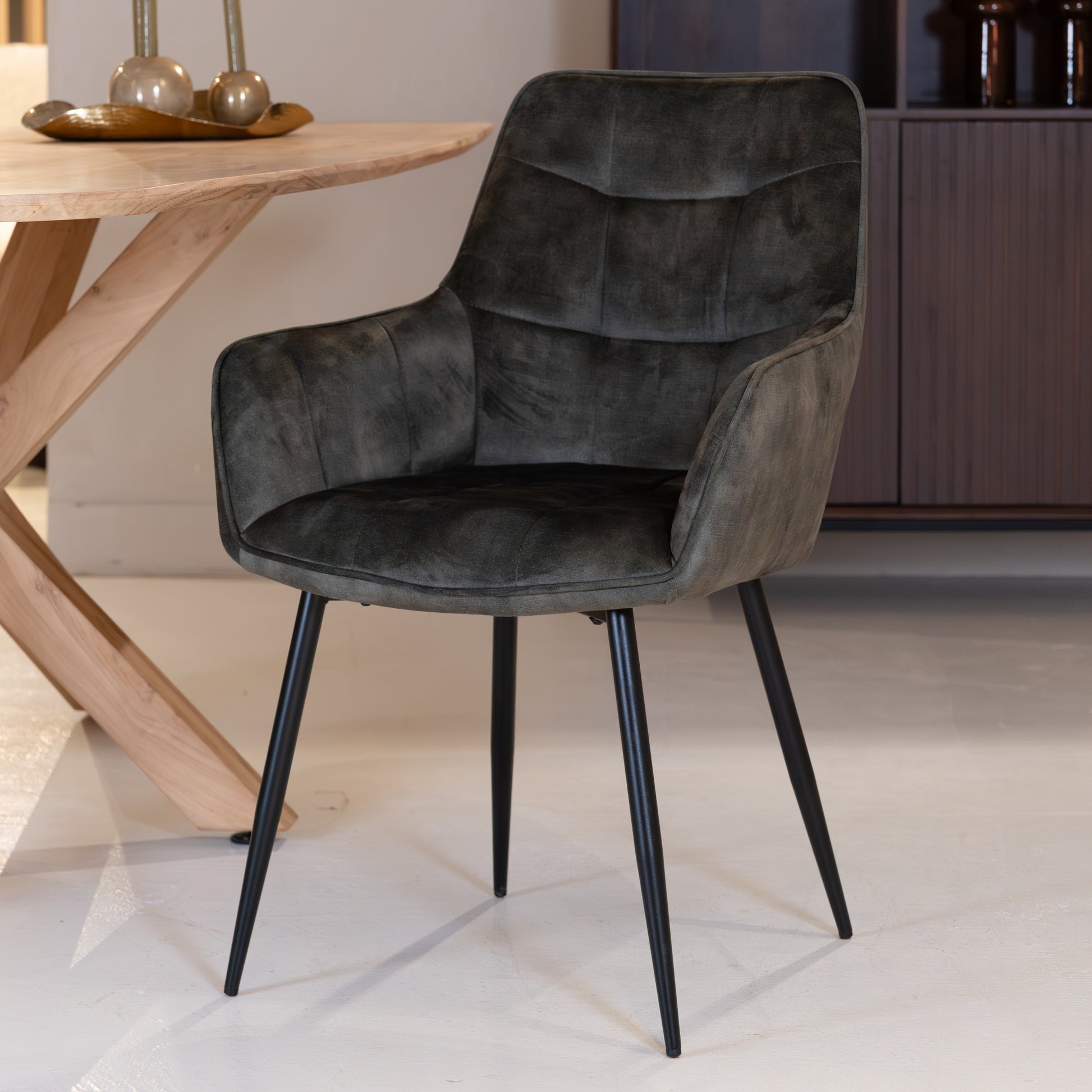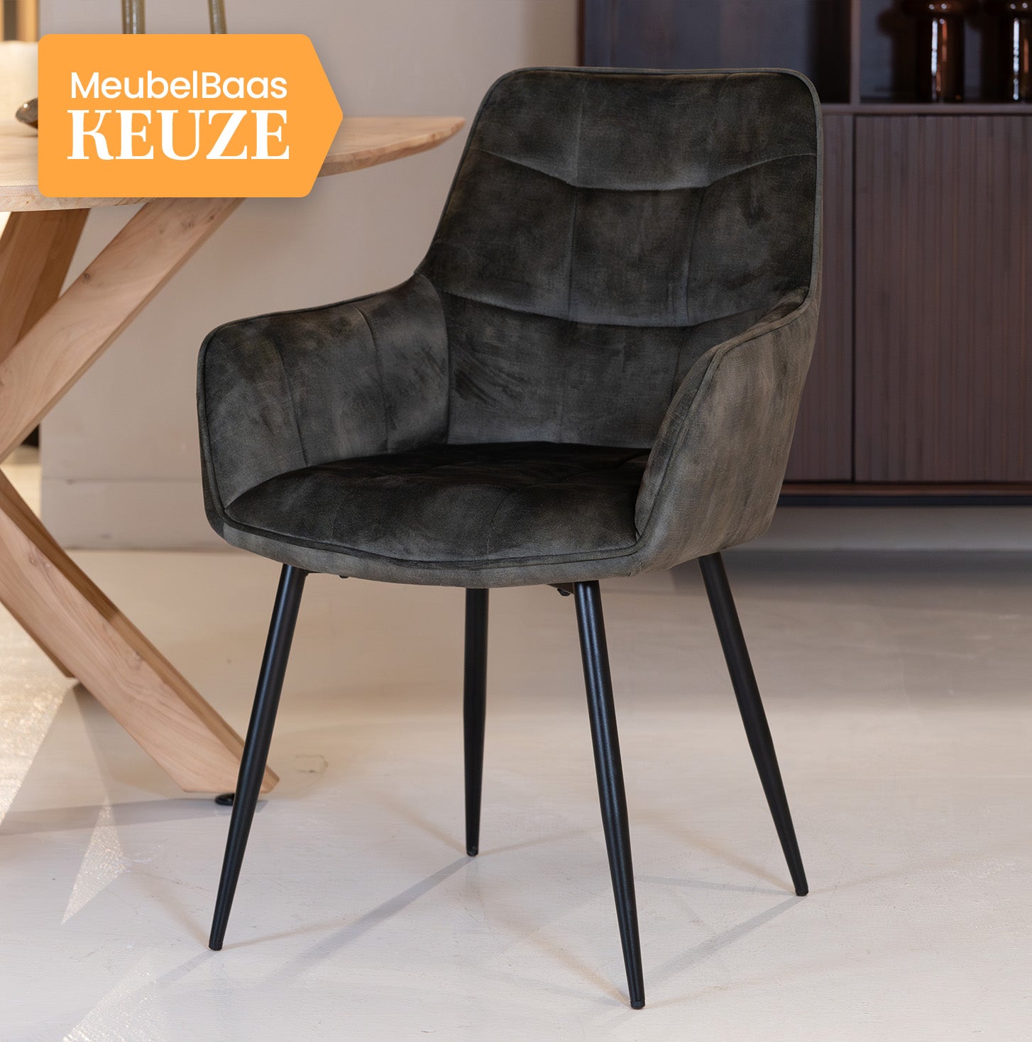 Ontdek de eetkamerstoel Lynn velvet van MeubelBaas – een elegant kuipmodel met verfijnd blokstiksel, bekleed met luxe velvet stof in zeven stijlvolle kleuren, zoals diep smaragdgroen, klassiek antraciet en zacht rosé. De fluweelzachte velvet geeft een rijke uitstraling en voelbare zachtheid, terwijl de hoogwaardige stof onderhoudsvriendelijk en duurzaam is. De zit is gevuld met vormstabiel schuim dat langdurig comfort biedt, gecombineerd met een stevig metalen onderstel dat een moderne basis vormt. Lynn velvet past perfect in woonstijlen zoals modern, klassiek of hollywood chic, en voegt direct sfeer toe aan je interieur.