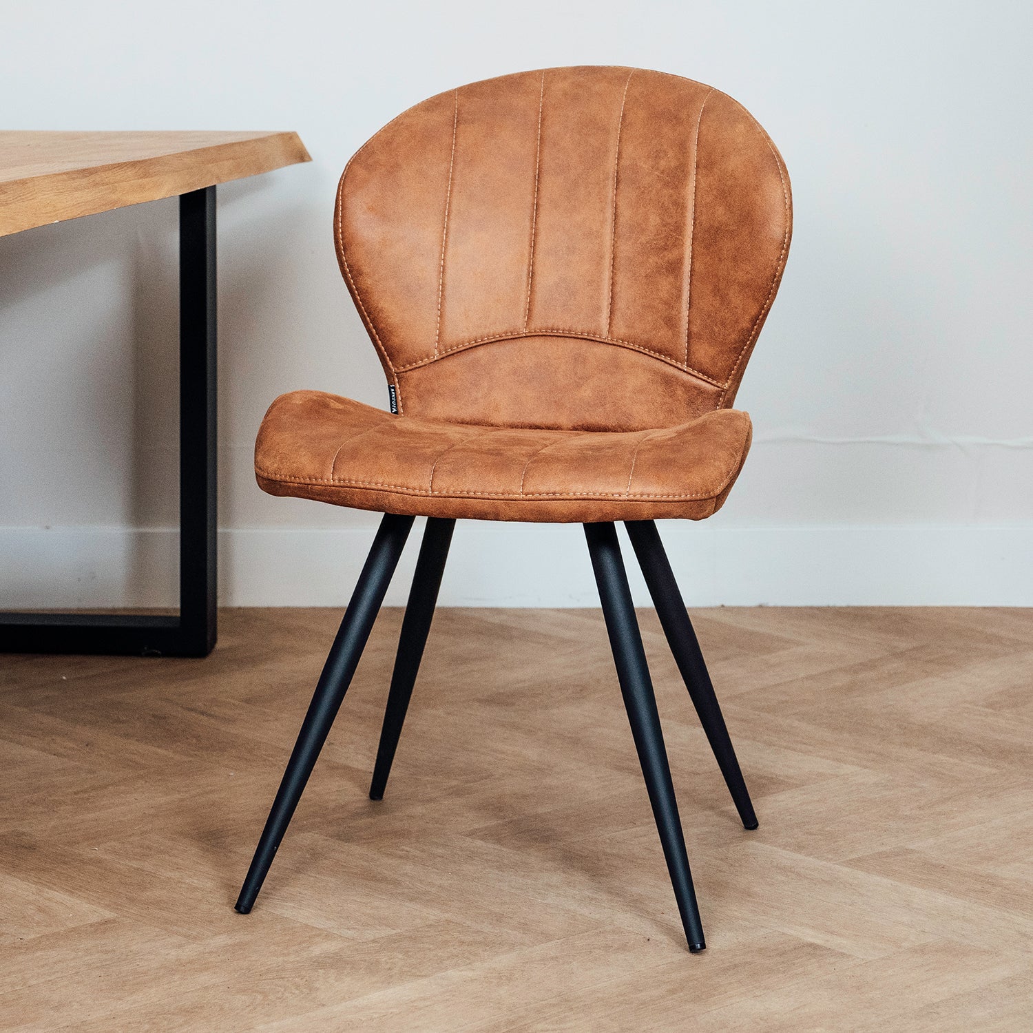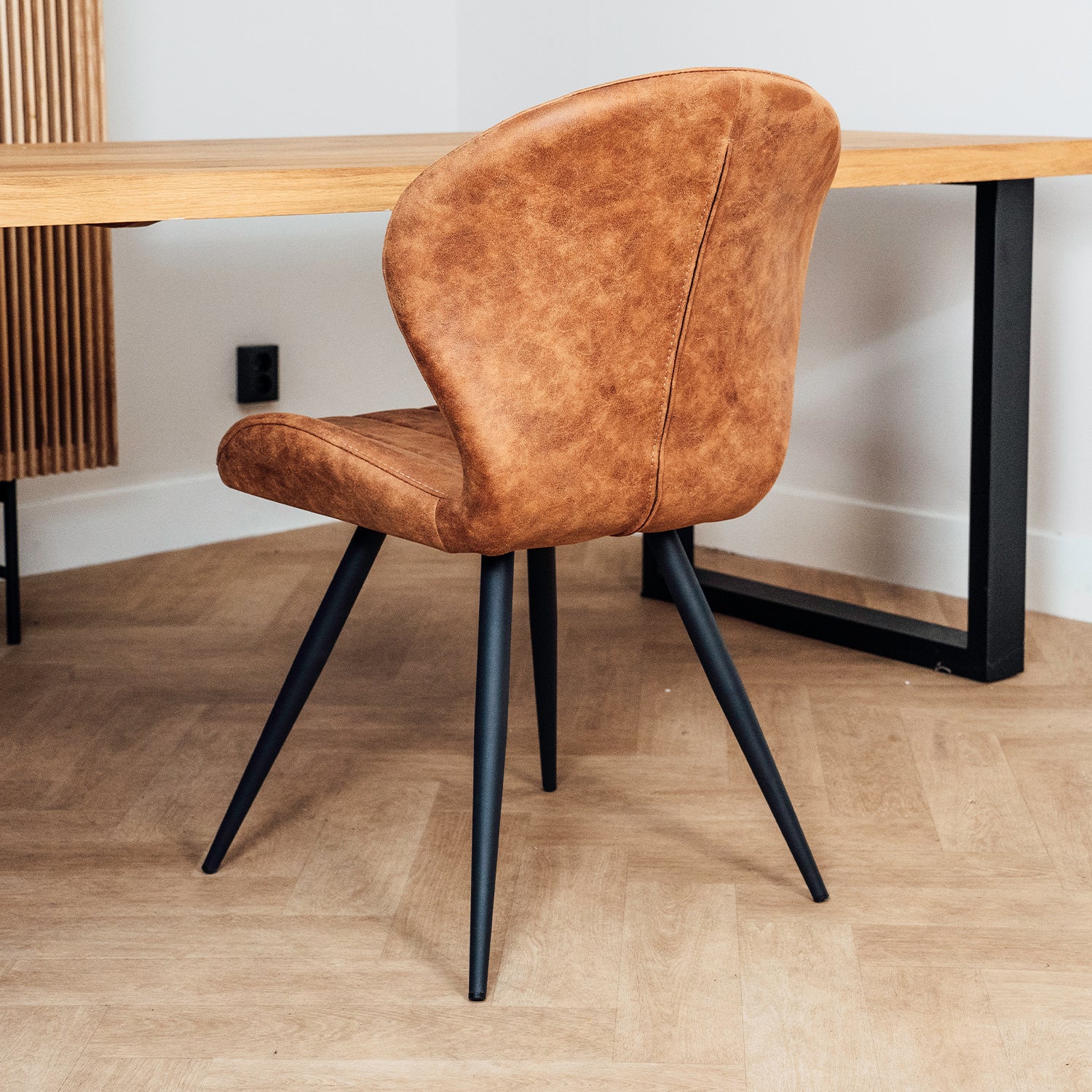 - Stabiel metalen onderstel: Het zwarte metalen frame geeft de stoel een moderne en stoere uitstraling en biedt uitstekende stabiliteit.