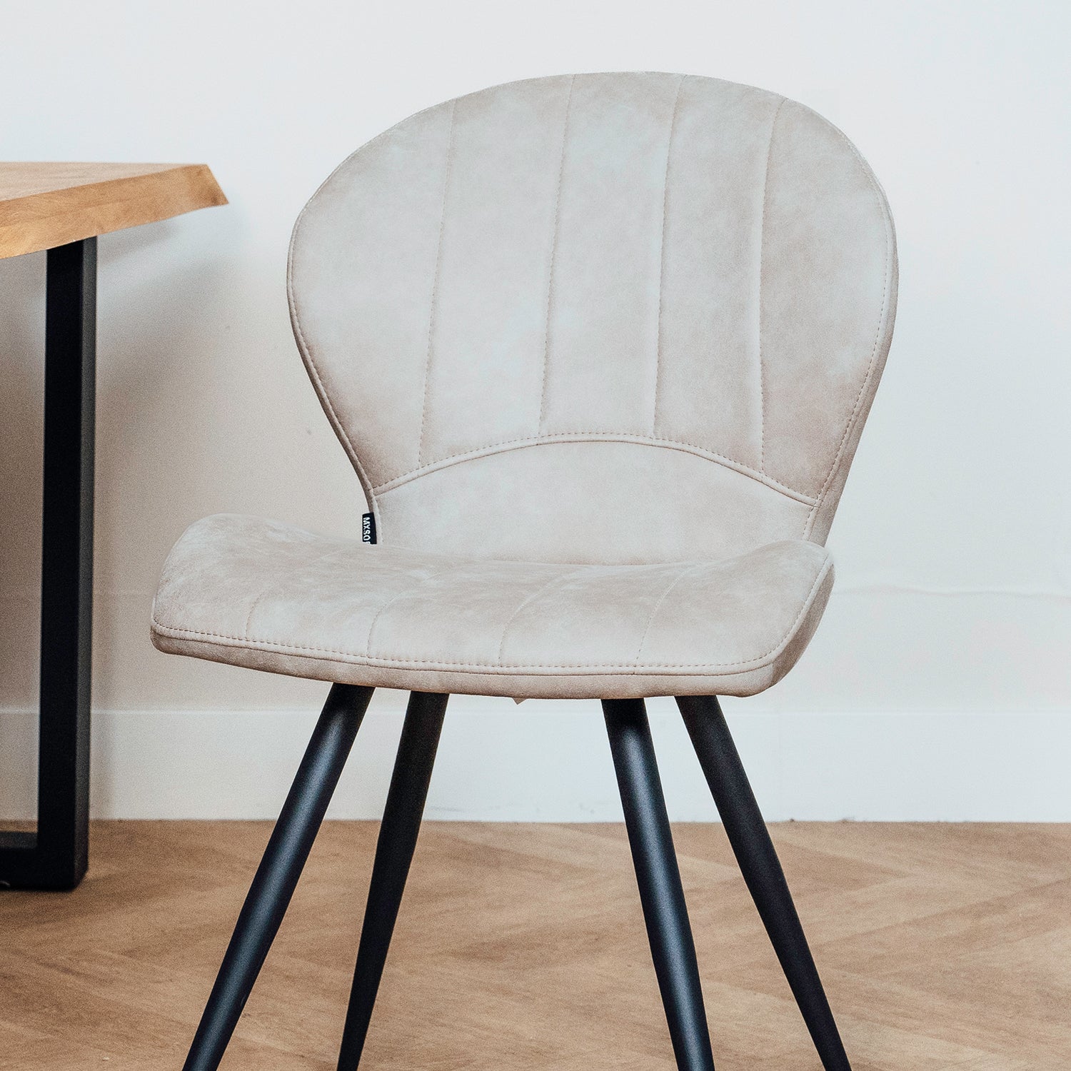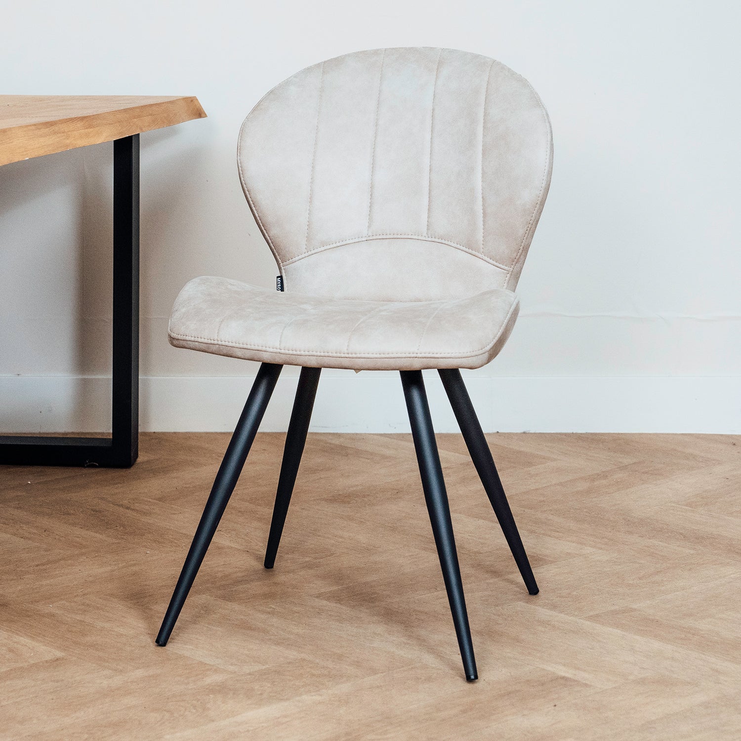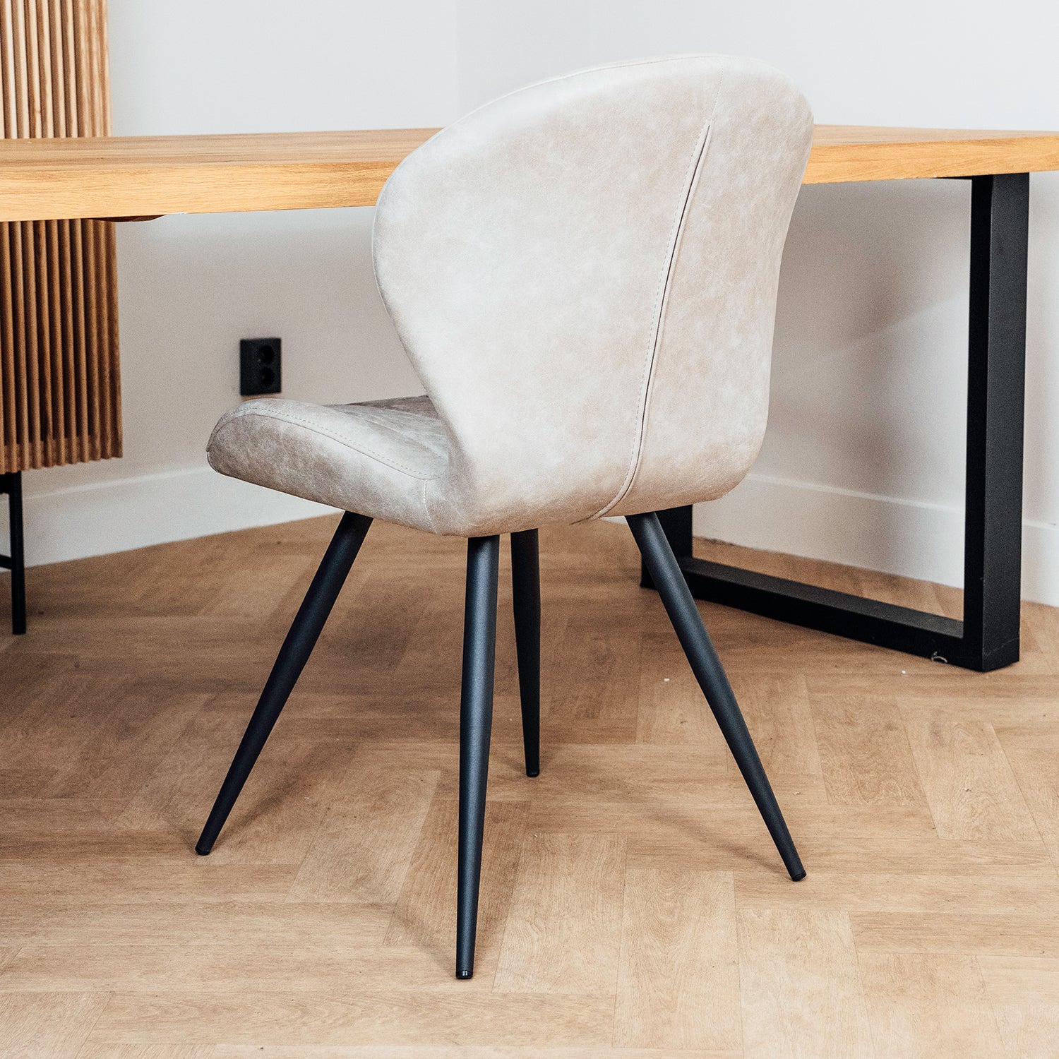 - Stabiel metalen onderstel: Het zwarte metalen frame geeft de stoel een moderne en stoere uitstraling en biedt uitstekende stabiliteit.