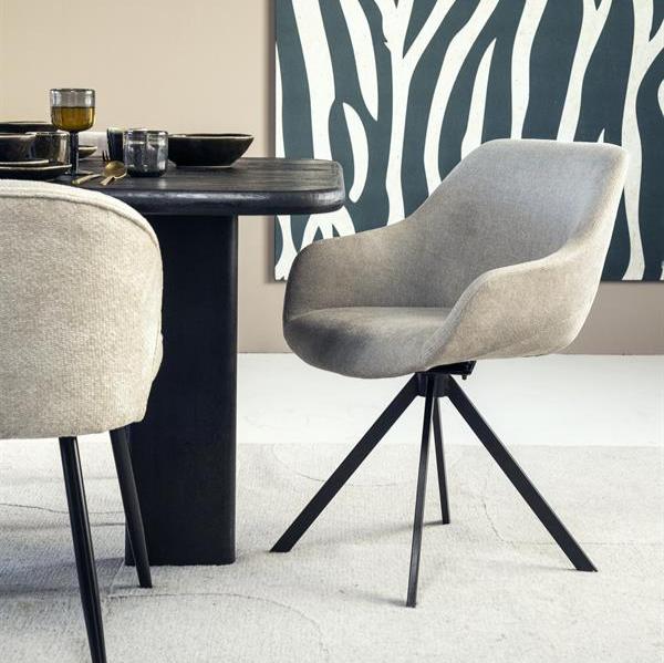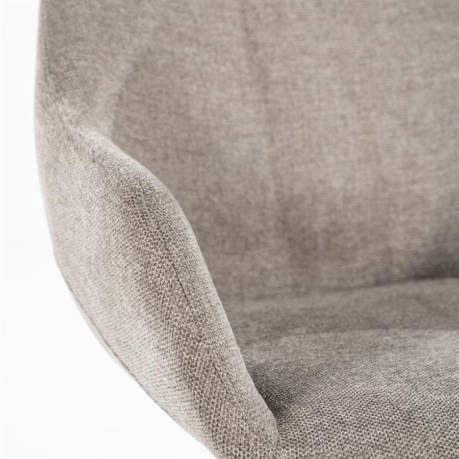 De eetkamerstoel Mamé combineert comfort en stijl met zijn hoogwaardige mix van stof en polyester. Deze stoel, voorzien van een comfortabele armleuning, is perfect voor lange diners en gezellige avonden met familie en vrienden. Verkrijgbaar in drie elegante kleuren – beige, bruin, en grijs – past de Mamé stoel naadloos in diverse interieurstijlen, of je nu voor een moderne, klassieke of warme uitstraling gaat.
