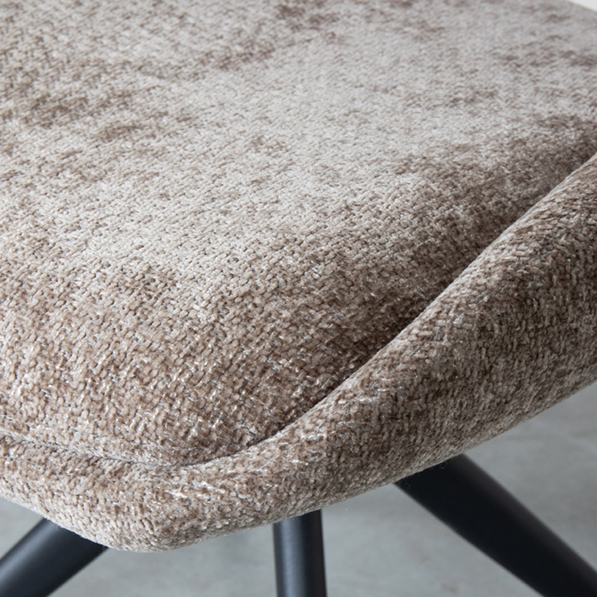 De eetkamerstoel Marlow in elite-stof combineert luxe en comfort met een minimalistische uitstraling, ideaal voor moderne en Scandinavische interieurs. De zachte elite-stof straalt verfijning uit en is perfect in balans met het strakke, metalen frame, dat zorgt voor een moderne touch.