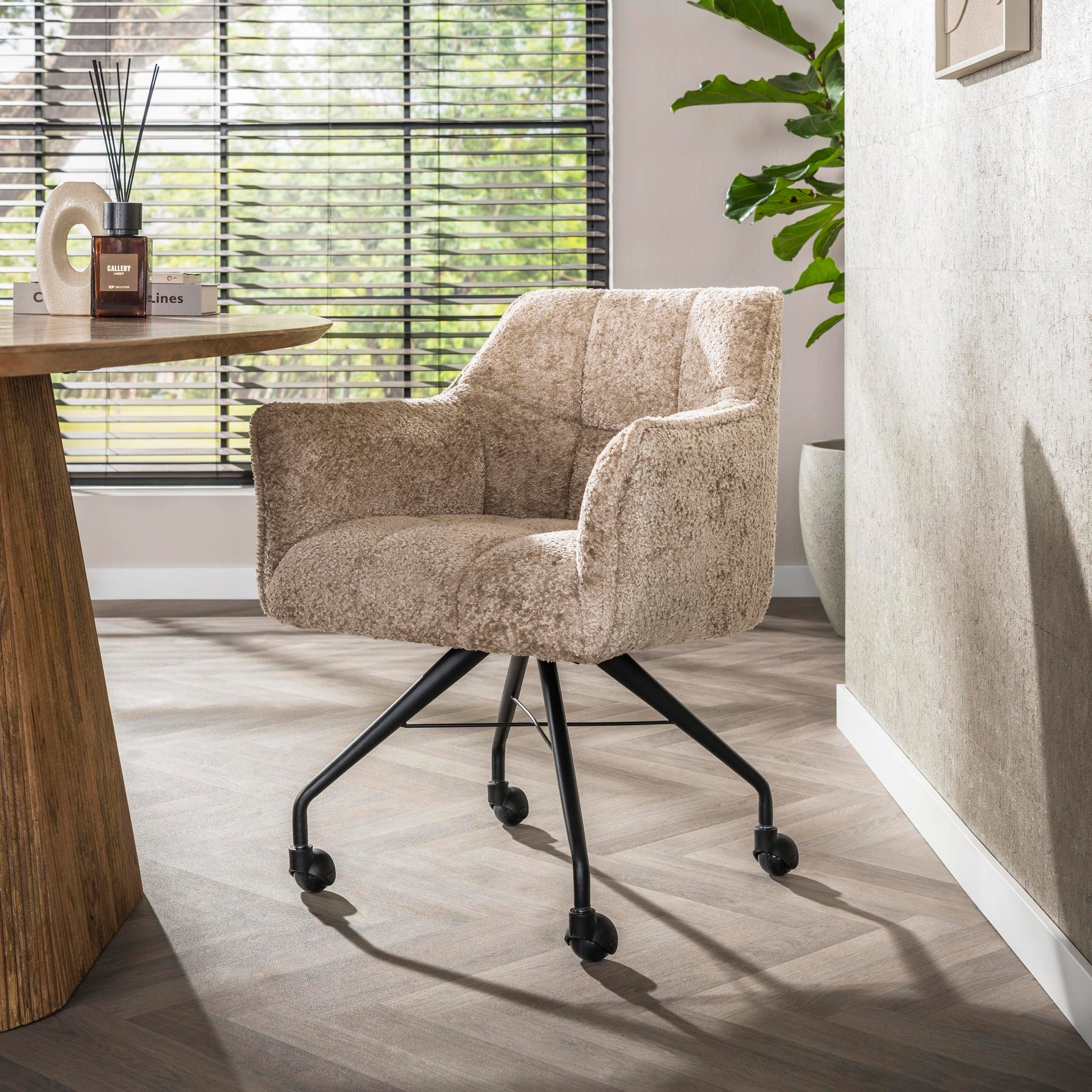 Eetkamerstoel Raster | Stof Alura Zand | Met Wieltjes