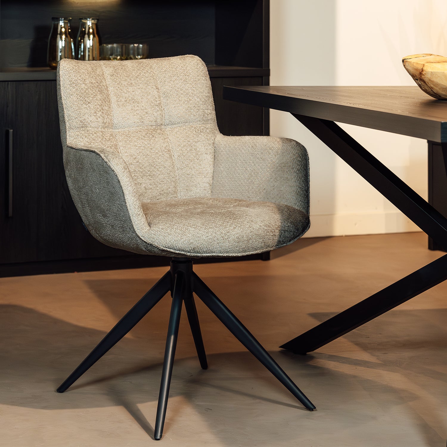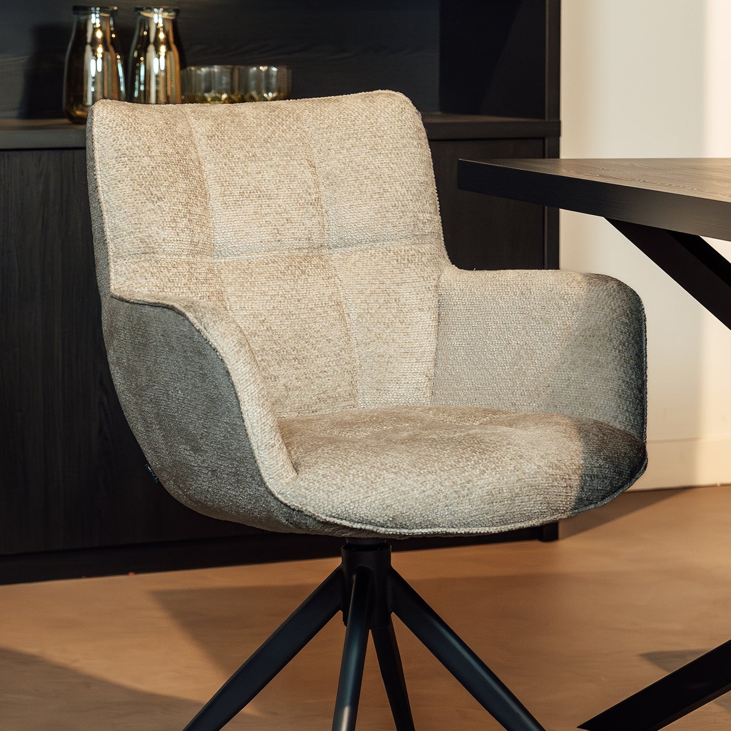 Til je eetkamer naar een hoger niveau met de Eetkamerstoel Reece. Deze moderne stoel is verkrijgbaar in drie stijlvolle kleuren: Antraciet, Naturel, en Taupe. De zitting is bekleed met een uitstekende stof die zacht en comfortabel aanvoelt, perfect voor langdurig gebruik tijdens gezellige diners. Wat de Reece Eetkamerstoel extra bijzonder maakt, zijn de draaipoten, die niet alleen zorgen voor flexibiliteit maar ook een eigentijdse touch aan het ontwerp geven.