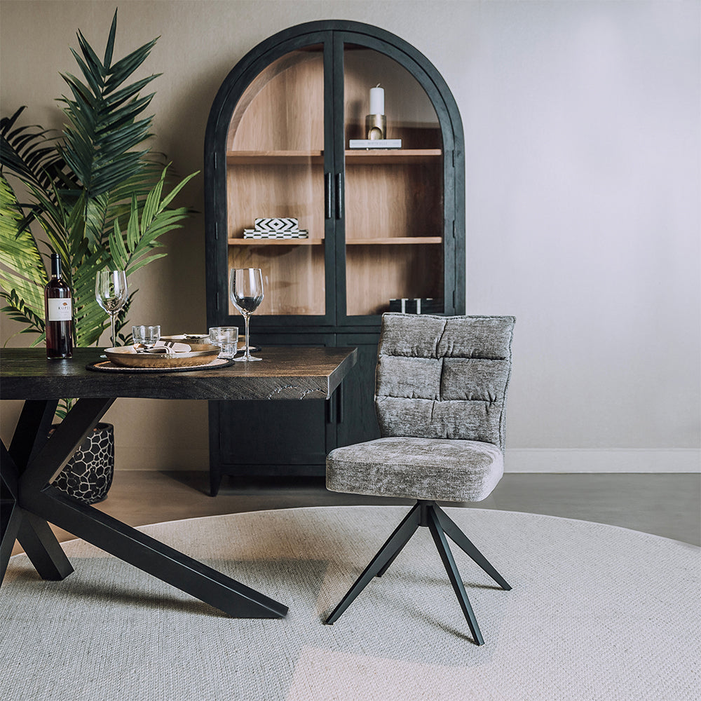 Het ontbreken van armleuningen maakt deze variant extra praktisch: hij neemt minder ruimte in beslag en schuift gemakkelijk aan tafel. Zo creëer je meer bewegingsvrijheid zonder in te leveren op comfort. De stevige constructie en hoogwaardige materialen zorgen bovendien voor duurzaamheid en langdurig gebruik. Met zijn tijdloze design is de Eetkamerstoel Rosora – grijs stof zonder armleuningen een veelzijdige keuze die jarenlang plezier biedt.