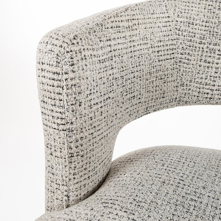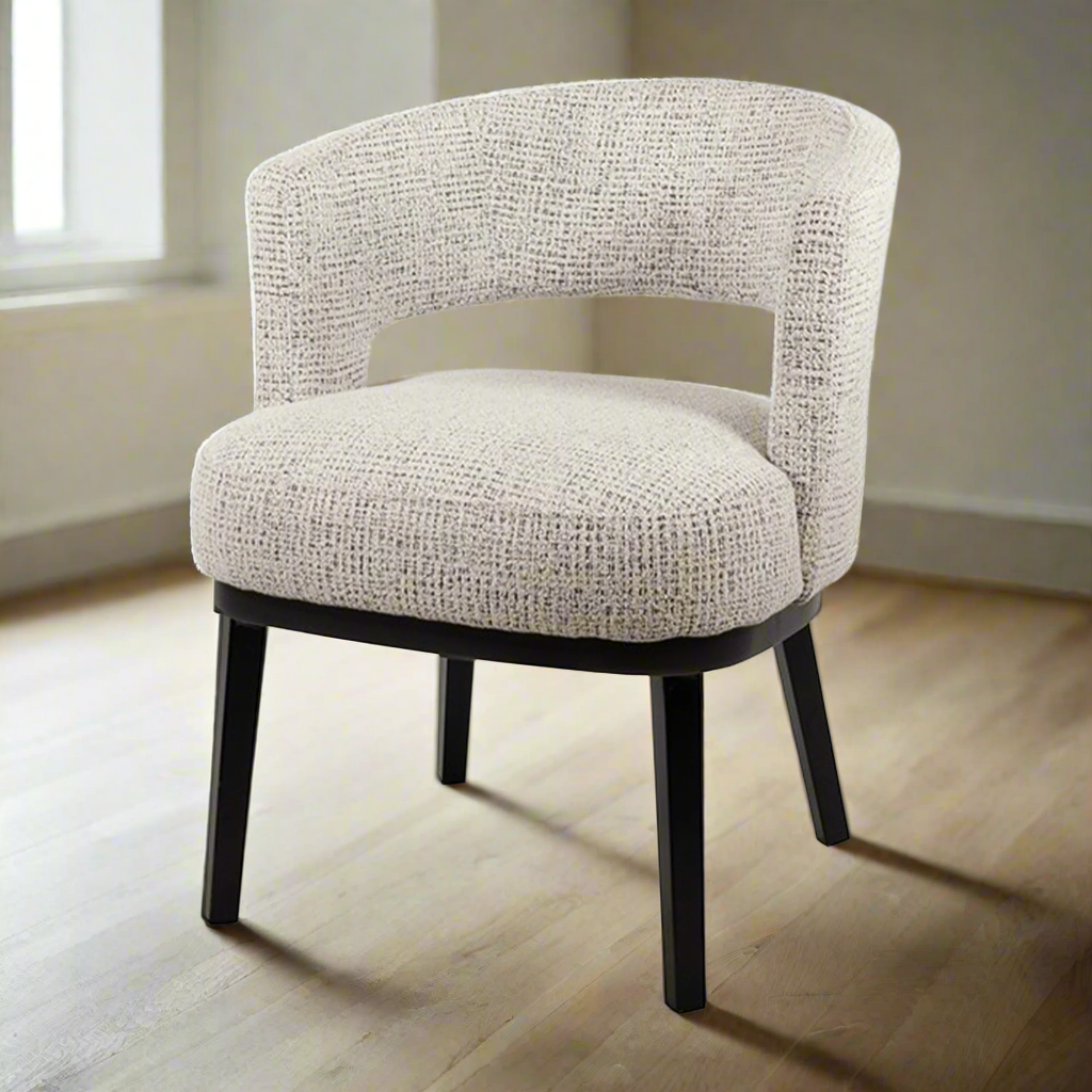 De Sting Eetkamerstoel | Wit Stof van Nijwie is een smaakvolle toevoeging aan een modern of elegant interieur. De warme witte stof brengt diepte en sfeer, terwijl de slanke vierpoots metalen poten zorgen voor een stabiel en strak silhouet. Dankzij de licht afgeronde rugleuning biedt de stoel niet alleen stijl, maar ook een aangenaam zitcomfort tijdens lange diners of gezellige avonden.