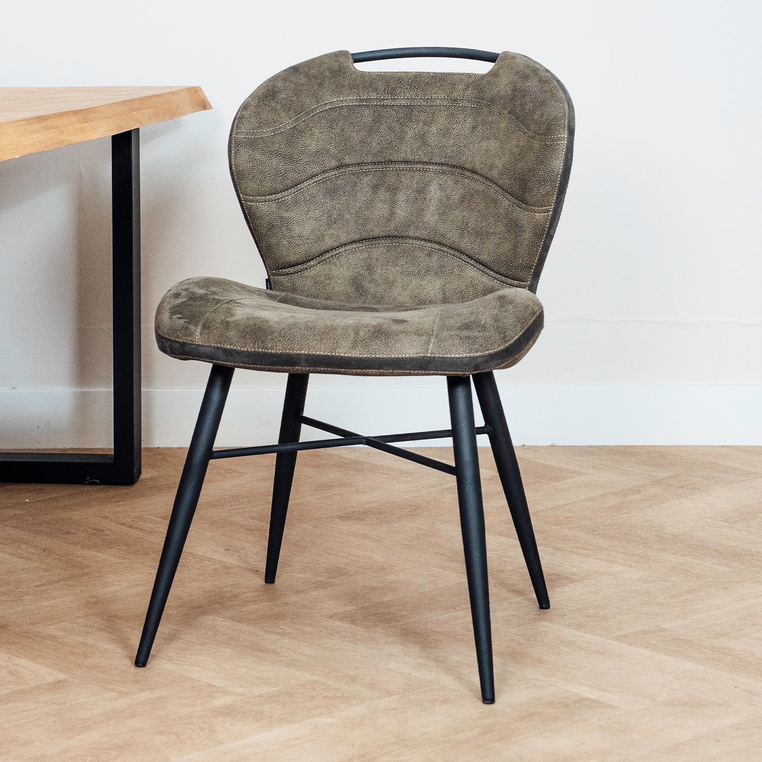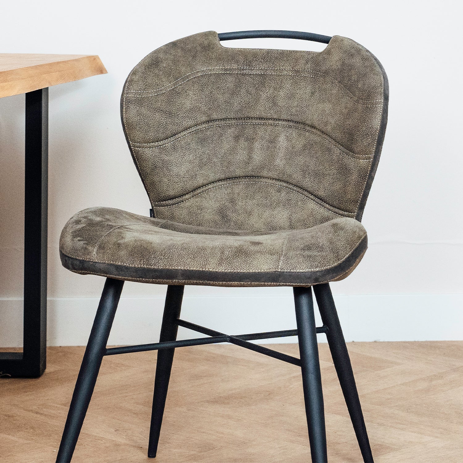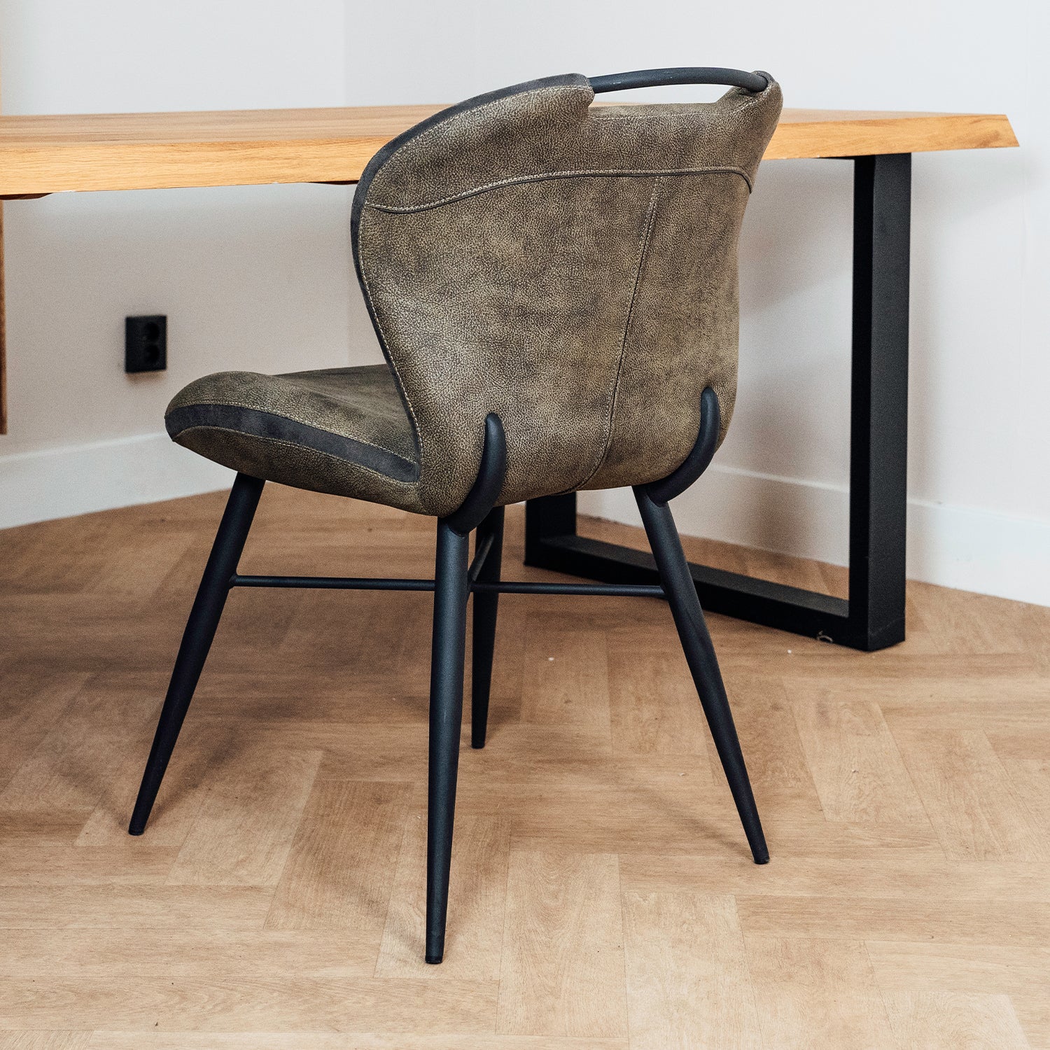 - Stevig metalen onderstel: Het zwarte metalen frame geeft de stoel een moderne en industriële uitstraling en zorgt voor een stabiele basis.