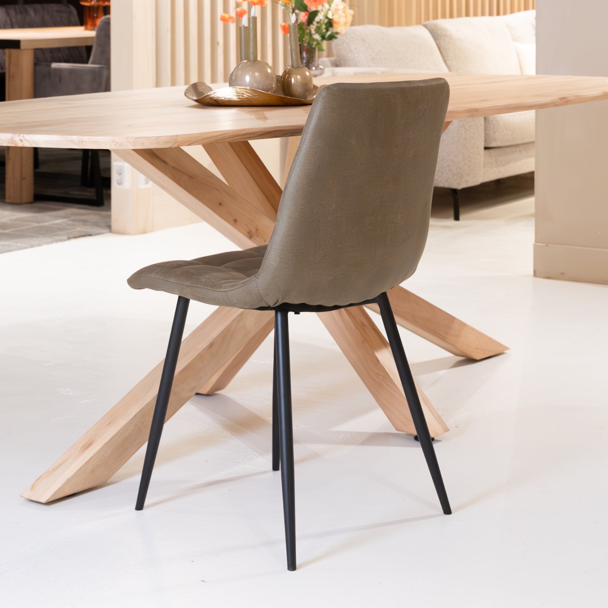 Onze Eetkamerstoelen Tess van micro suède in de kleur groen bieden een stijlvolle en comfortabele toevoeging aan elk eetkamerinterieur. Deze stoelen staan bekend om hun elegante uitstraling en het gebruik van hoogwaardige materialen. De groenkleurige micro suède bekleding zorgt voor een luxe en tegelijkertijd warme sfeer, perfect voor lange diners of gezellige avonden met vrienden en familie.