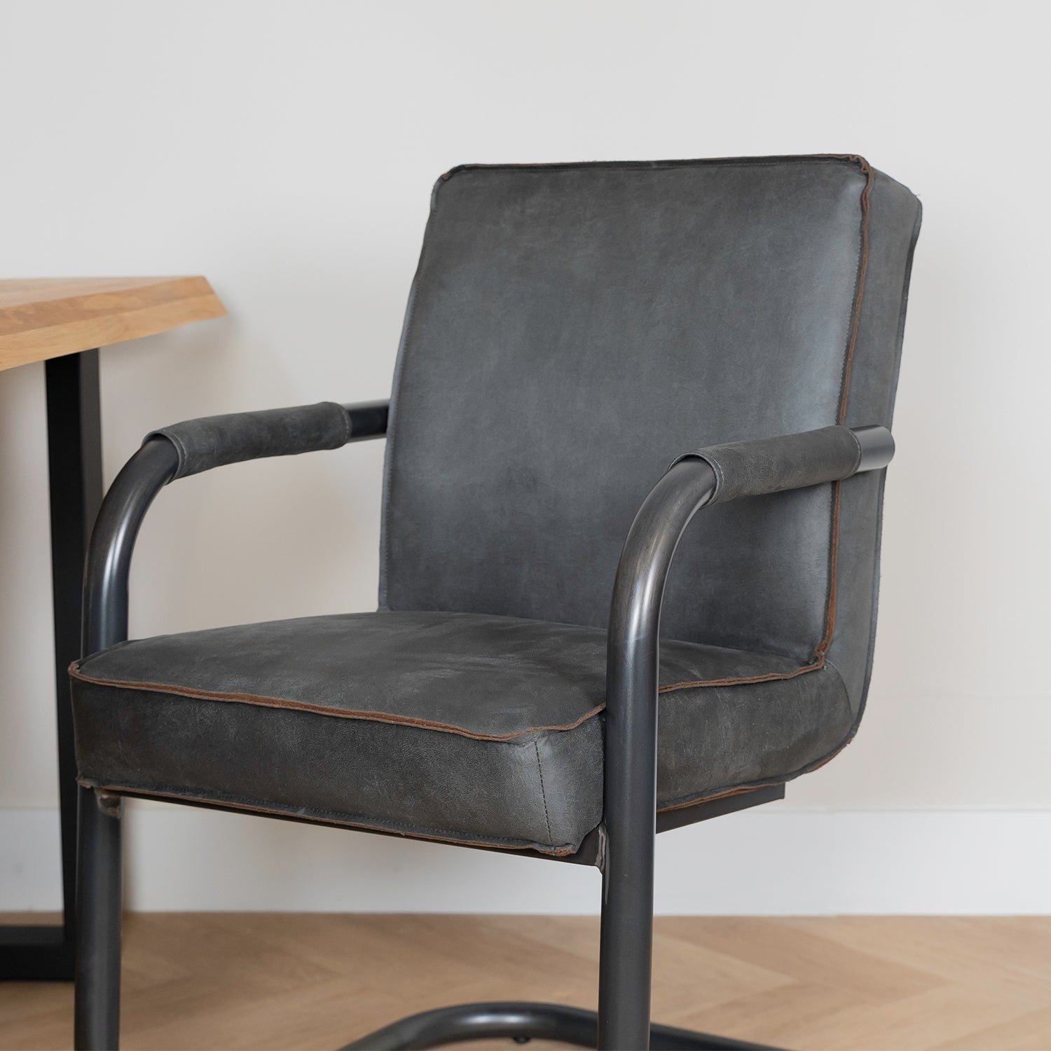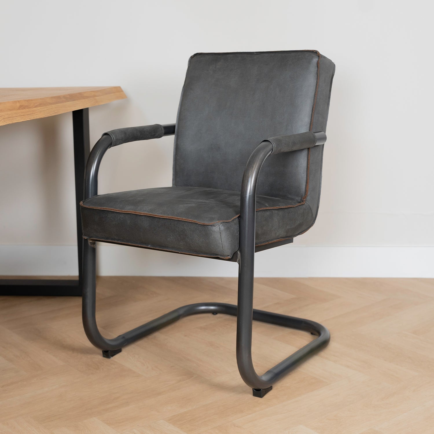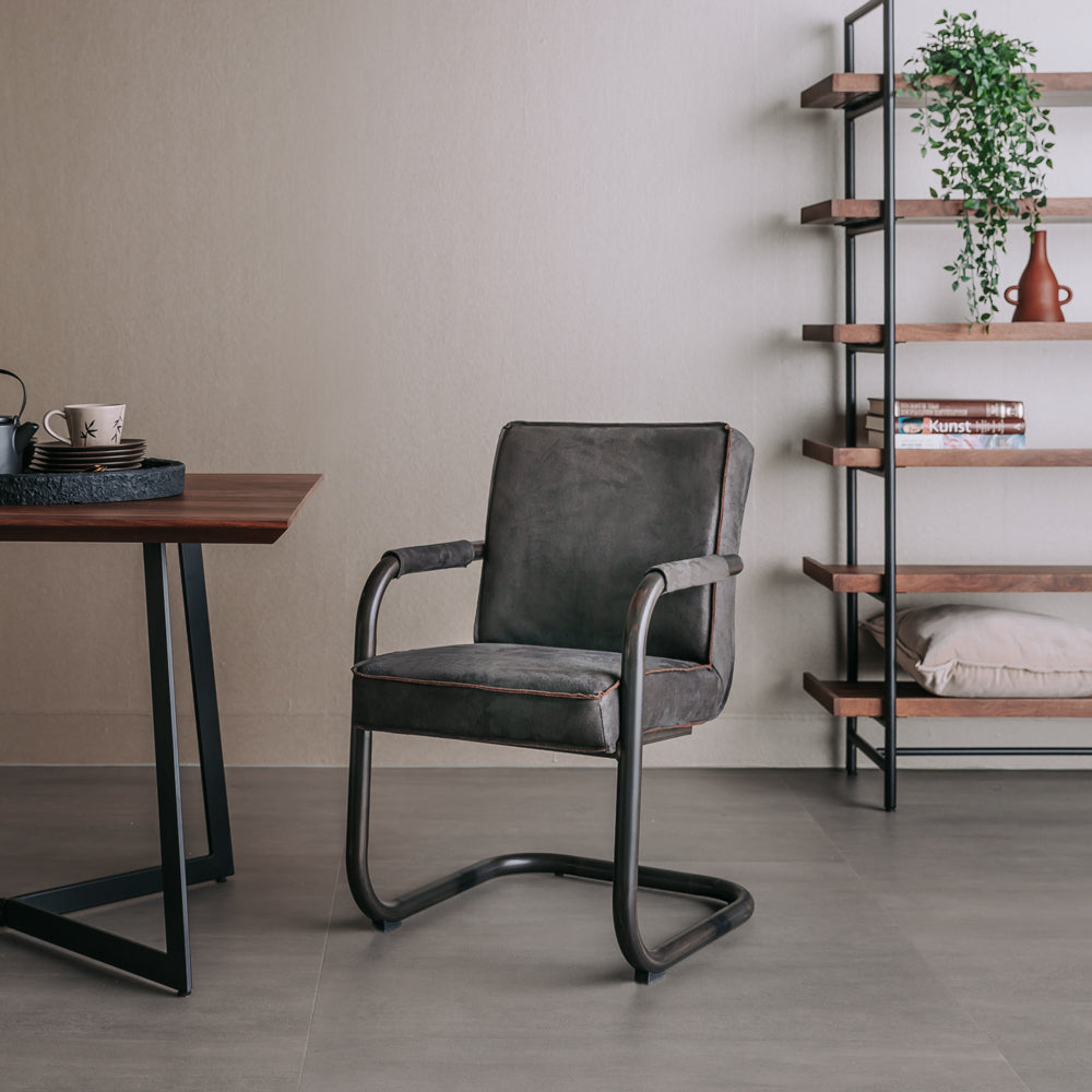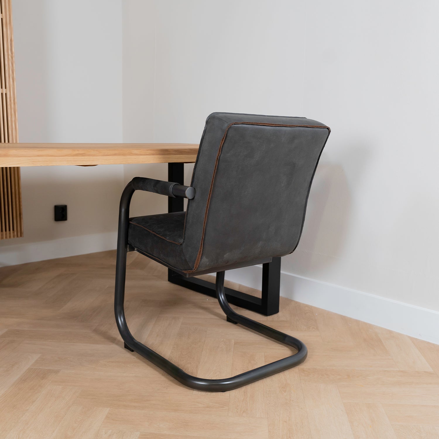 Deze prachtige eetkamerstoel is gemaakt van de stof: Bull. De onderlaag van deze stof is 100% leer, en de bovenlaag is uitgevoerd in microvezel. De stoel heeft een zeer moderne en trendy look. Deze stoel is verkrijgbaar in de kleuren antraciet, cognac en groen.