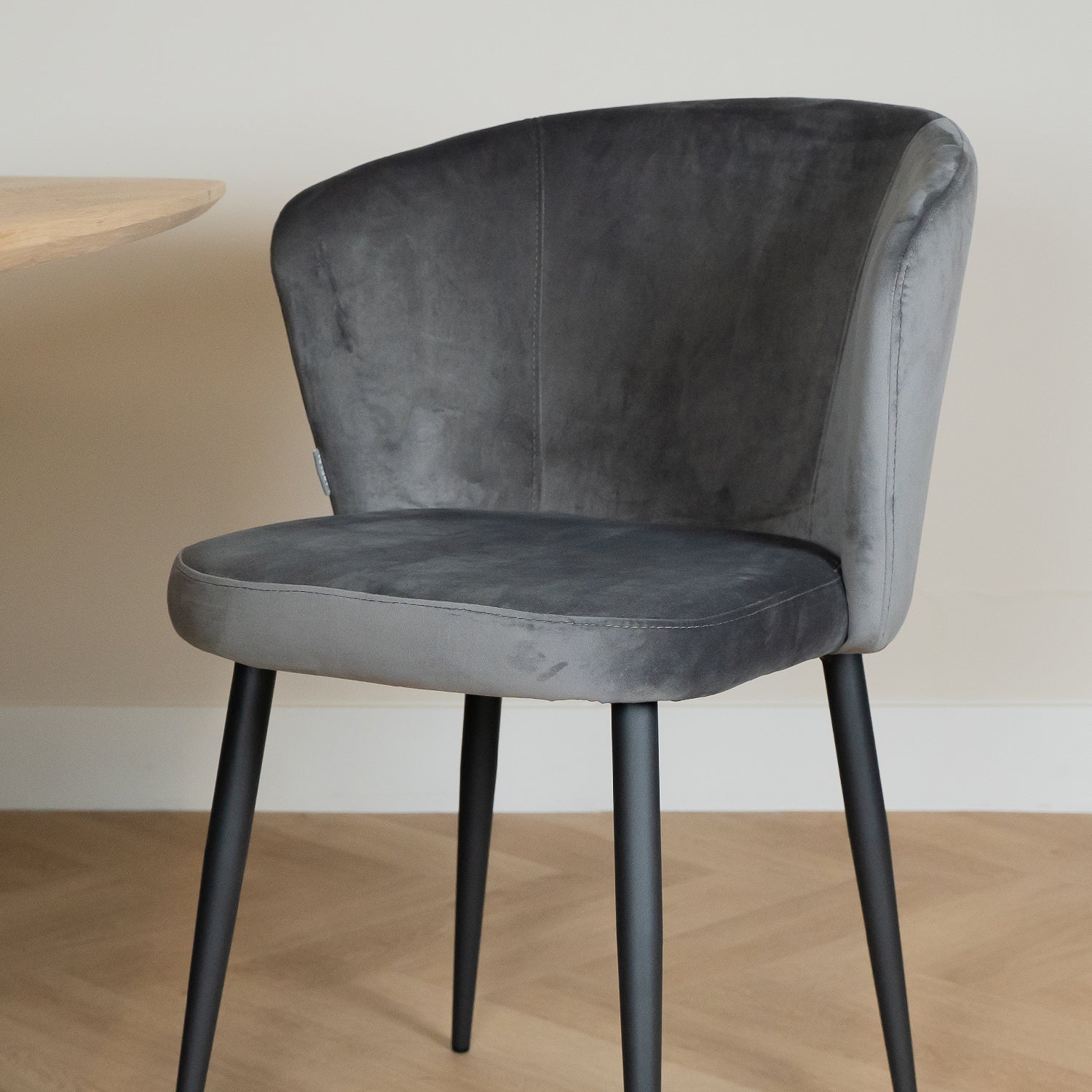 Deze charmante stoel met extreem zacht uiterlijk is een super comfortabele aanwinst voor in huis. De rugleuning vouwt zich om het zitvlak heen en schept zo een warm karakter. De metalen poten lopen licht naar buiten waardoor de stoel stevig staat.