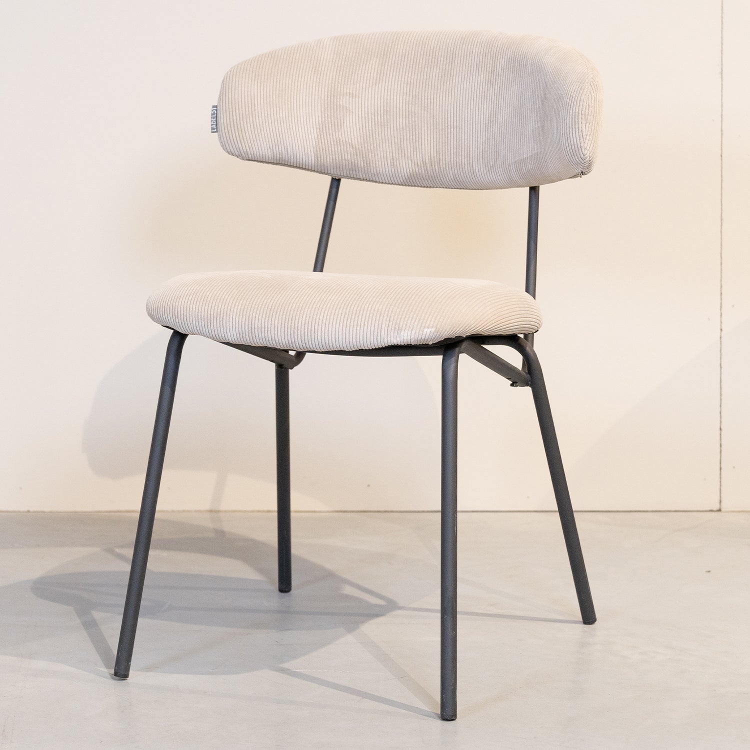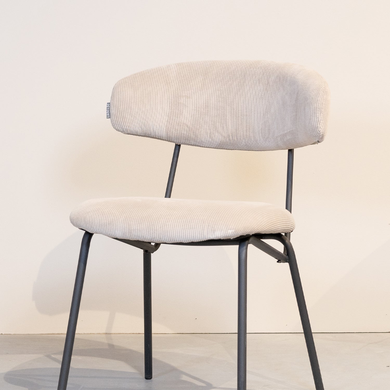 Maak kennis met de Eetkamerstoel Zack in Naturel Ribcord. De naturel ribcord stof voelt heerlijk aan en geeft een warme uitstraling. Met zijn unieke ronde zitting en aparte rugleuning, verbonden door een stijlvol zwart frame, biedt Zack niet alleen comfort maar ook een flinke dosis stijl.