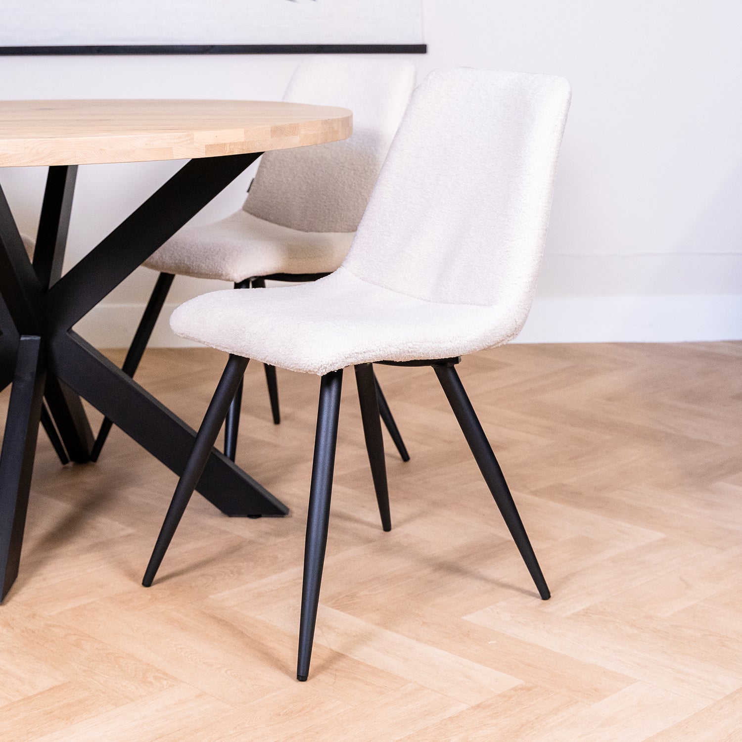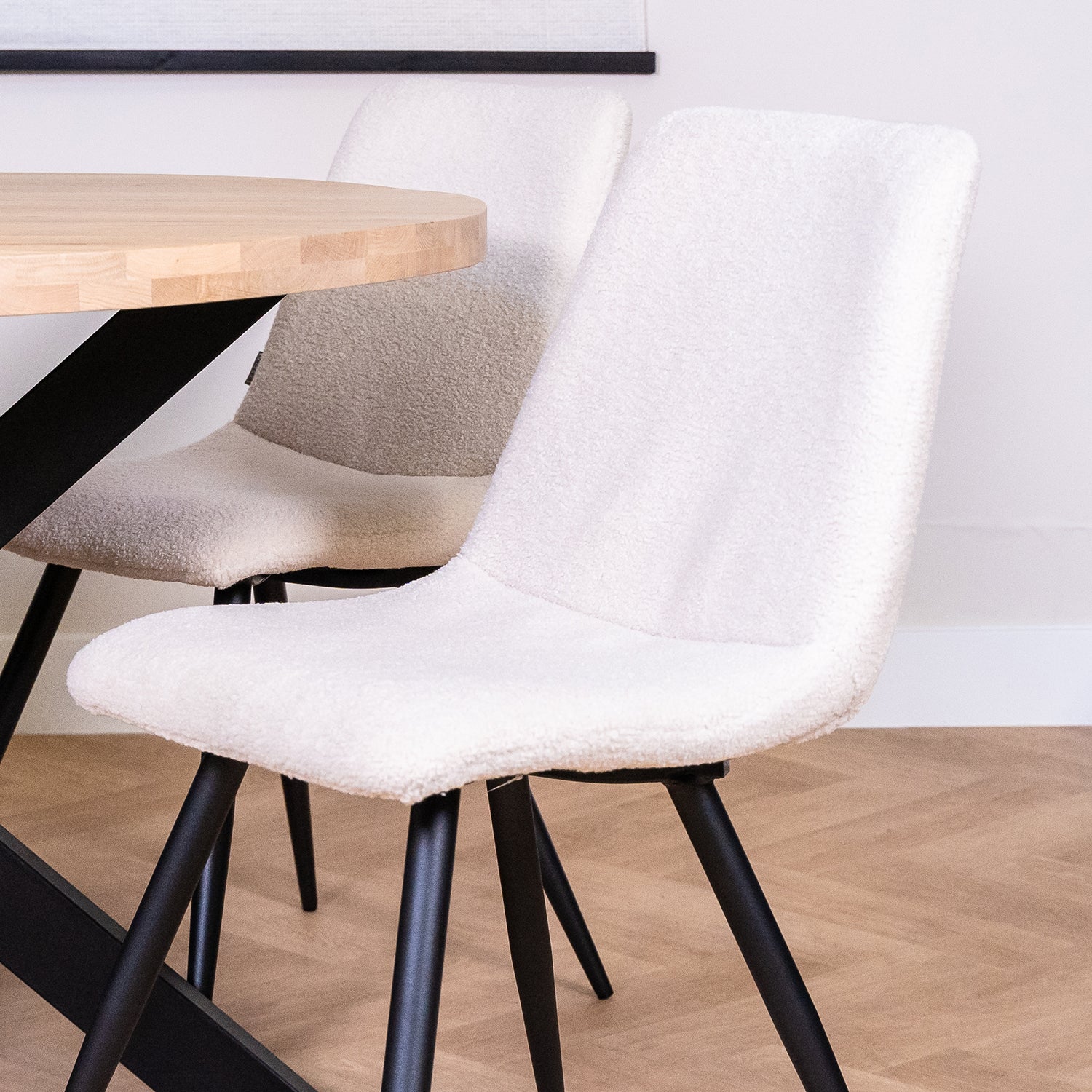 Eetkamerstoel Jep is een prachtige eetkamerstoel gemaakt van teddy stof waardoor deze stoel zeer comfortabel is en een erg unieke look heeft. Teddystof is een hele zachte en stevige stof en het is erg populair. De eetkamerstoel s verkrijgbaar in de kleuren: zwart en wit teddystof.