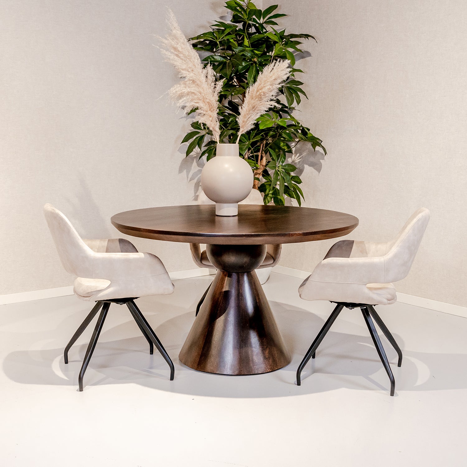 Doordat deze eettafel een doorsnee van 130 cm heeft, is er de mogelijkheid om 6 stoelen te plaatsen. Voor nog meer plezier aan deze prachtige eetkamertafel!