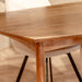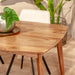 De slanke poten geven het ontwerp een luchtige, moderne uitstraling. Dankzij de natuurlijke houtkleur past de tafel moeiteloos in uiteenlopende woonstijlen — van Scandinavisch tot Japandi of industrieel chic.