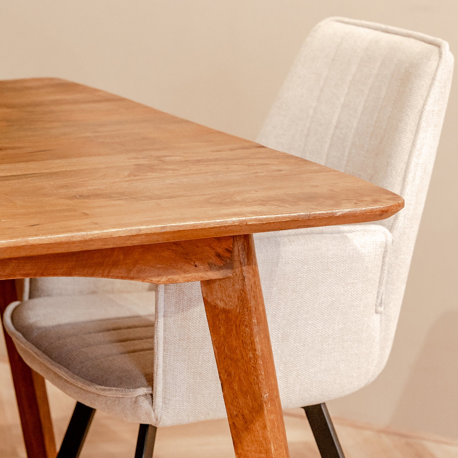 Het mangohout is zorgvuldig geselecteerd en verwerkt om duurzaamheid te garanderen, zodat je jarenlang kunt genieten van deze prachtige tafel. De natuurlijke houtnerf en kleurvariaties maken elk exemplaar uniek.