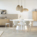- Witte afwerking: De tafel is afgewerkt in wit, wat zorgt voor een frisse en heldere uitstraling die gemakkelijk kan worden gecombineerd met verschillende interieurstijlen, van Scandinavisch tot modern.