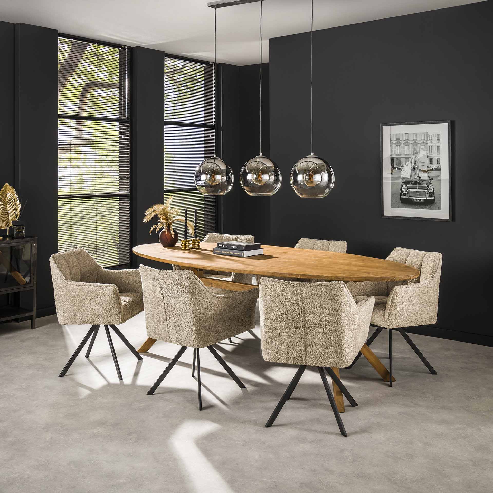 Maak kennis met onze Londen Eettafel, een trendy meesterwerk vervaardigd uit massief teakhout met een teakhouten frame. Deze ovale eettafel is niet zomaar een tafel, het is een ware eye-catcher die jouw interieur een warme en sfeervolle touch geeft. Beschikbaar in drie verschillende maten - 200 cm, 240 cm en 300 cm - biedt deze tafel de perfecte oplossing voor iedere ruimte.