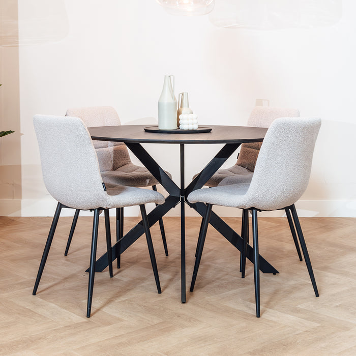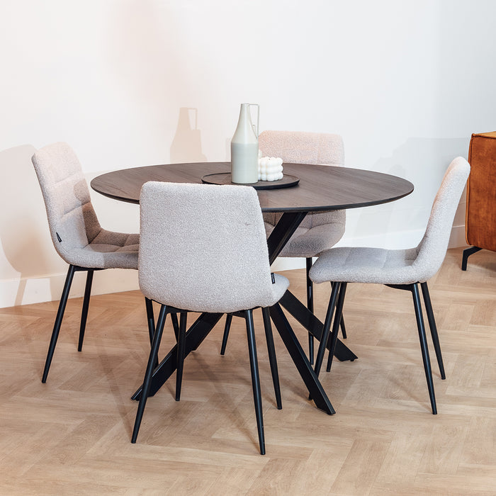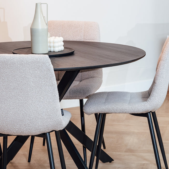 Het unieke design en de combinatie van materialen maken van de ronde Eettafel Mila een echt pronkstuk die moeiteloos in elke woning past.