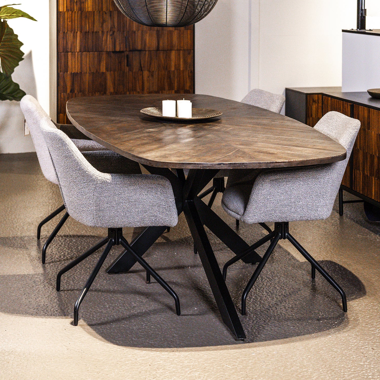 Zoek je een unieke en warme toevoeging aan je eetkamer? Onze Eetkamertafel Silvi, gemaakt van prachtig bruin mangohout in een Deens ovaal ontwerp met een visgraatpatroon, is de perfecte keuze voor jouw huis. Deze Deens ovale eettafel straalt gezelligheid uit en brengt een onmiskenbare charme in elke maaltijd.