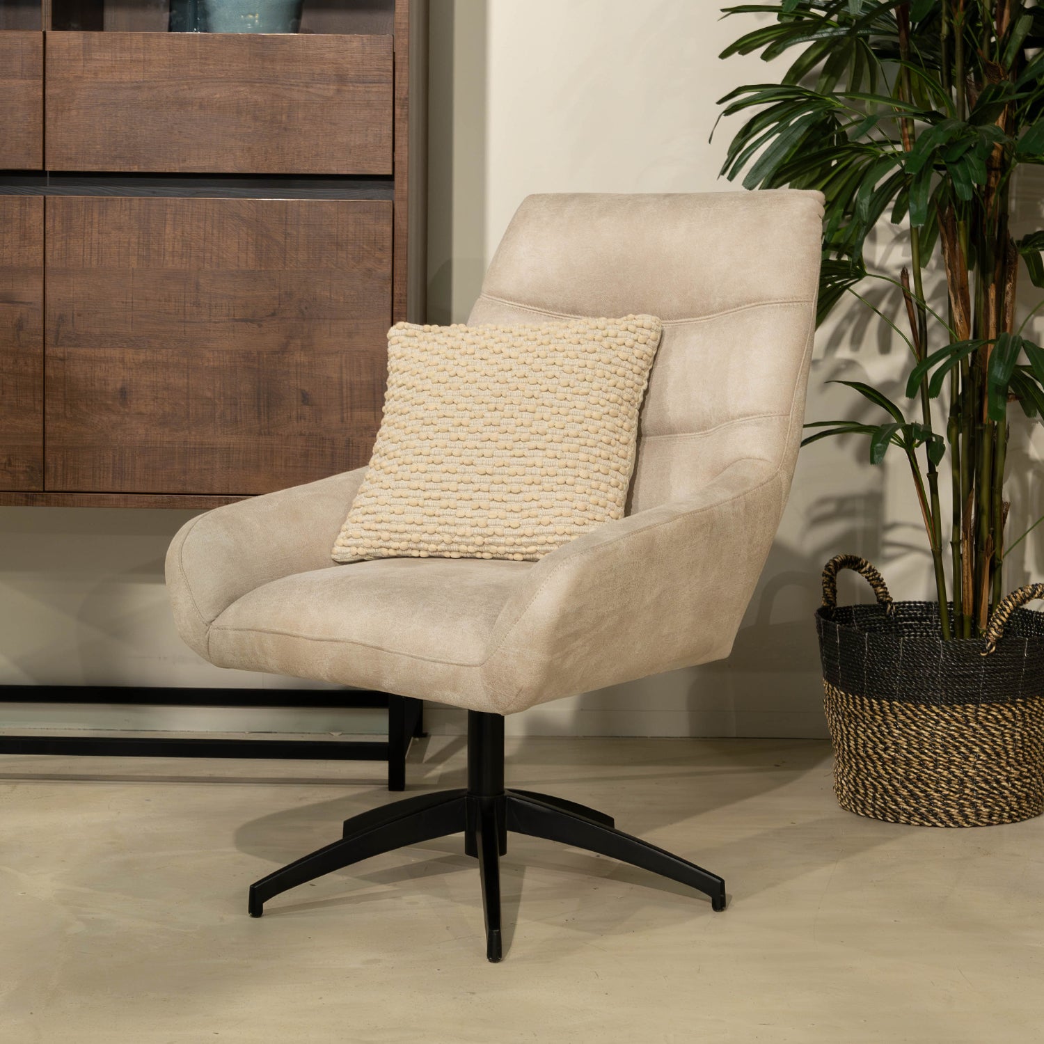 Maak kennis met de Hero Fauteuil, een perfecte mix van stijl en comfort. Verkrijgbaar in vier elegante kleuren:c. Deze fauteuil is bekleed met luxe stof die zacht aanvoelt en tegelijkertijd duurzaam is voor dagelijks gebruik. Het robuuste metalen onderstel zorgt voor een stabiele basis en geeft de fauteuil een moderne, industriële uitstraling.
