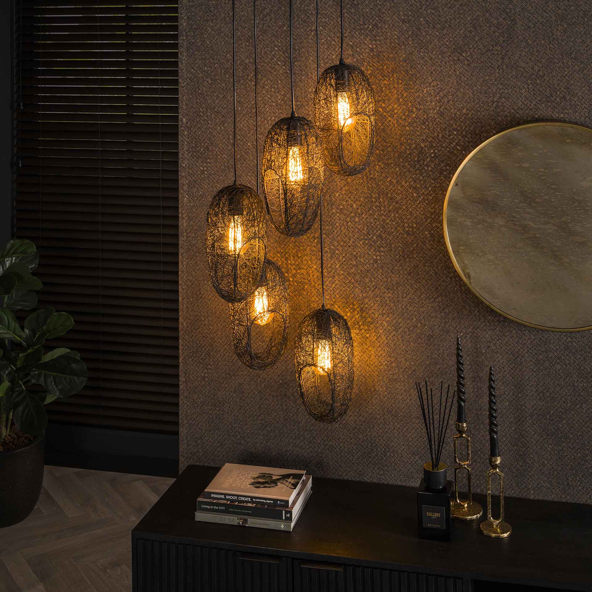 Hanglamp 5L Open Oog past perfect binnen een hotel chique of modern interieur. Al kan je deze lamp ook goed combineren met heel veel andere meubel stijlen.
