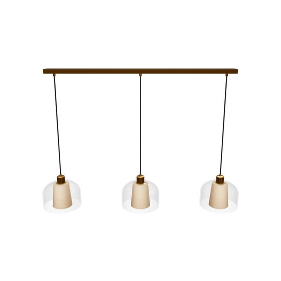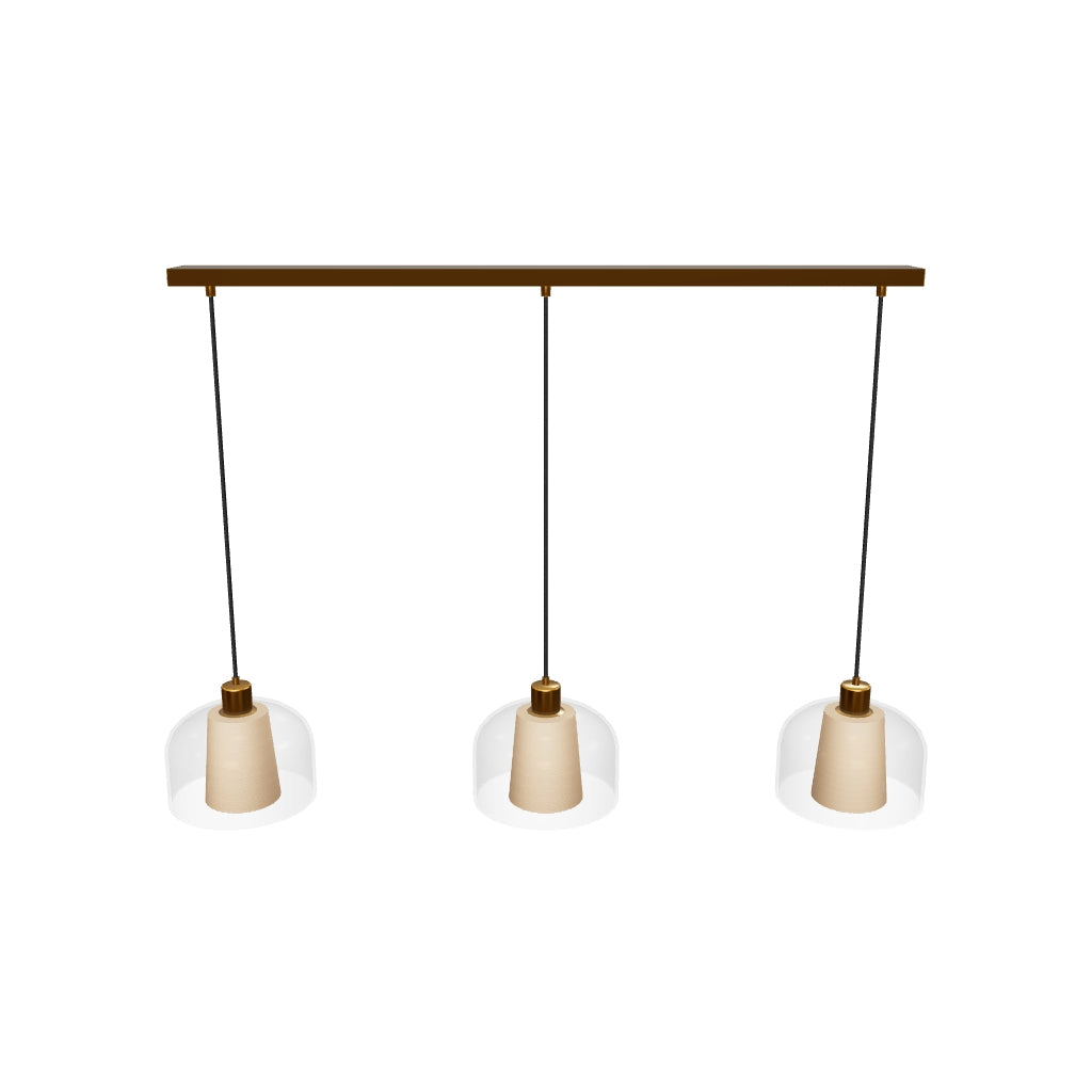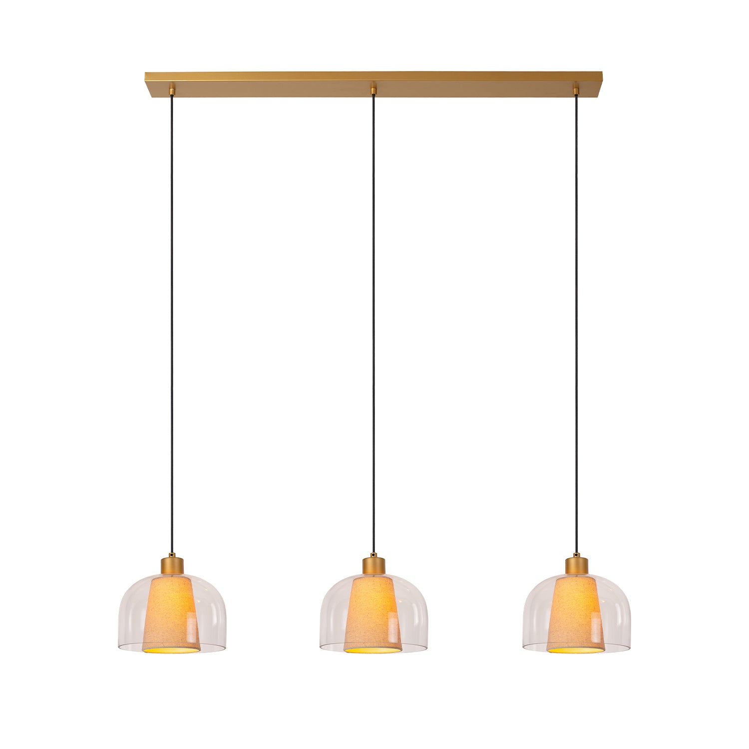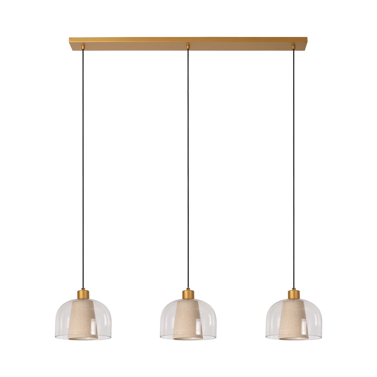 Maak kennis met Gunhild de industriële hanglamp. Onder de glazen lampenkappen verbergen zich linnen kapjes, wat deze hanglamp een unieke charme geeft. Met drie lichtbronnen op een rij is Gunhild ideaal voor het creëren van sfeer boven eettafels of buffetkasten, waardoor ze je altijd in de juiste stemming brengt.