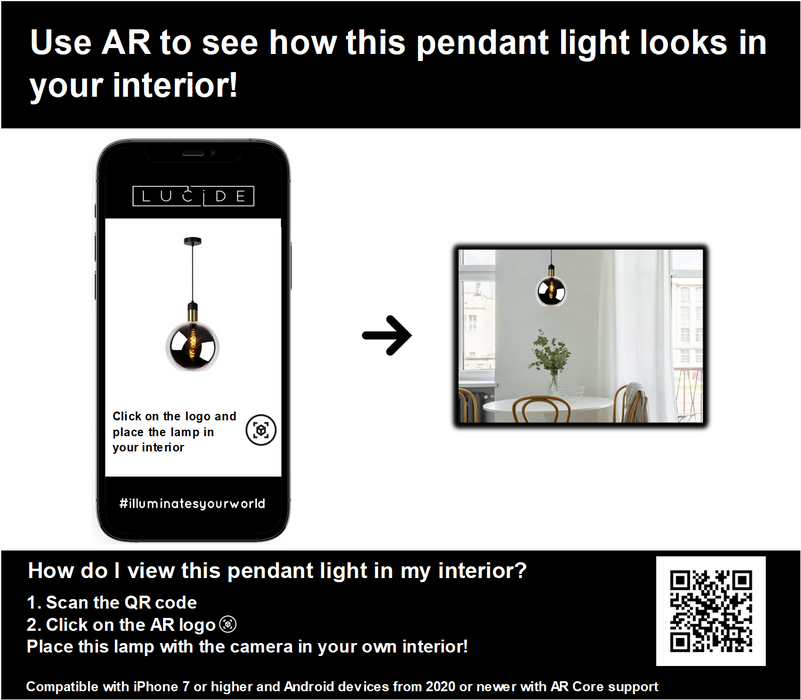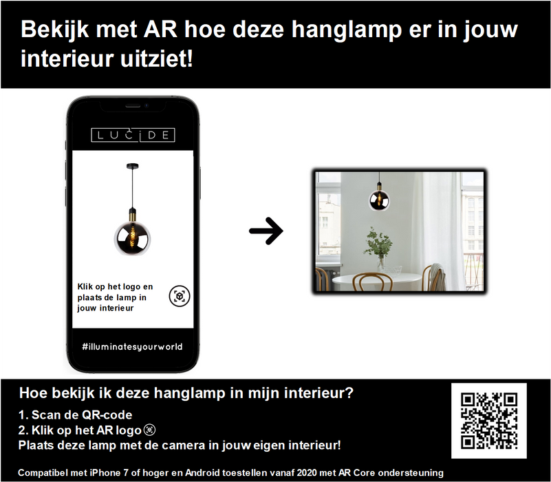 Al onze lampen worden exclusief lichtbron verkocht. Deze lamp maakt gebruik van fitting E27 (grote fitting). Deze lamp kan maximaal een lichtbron van 40 watt aan. Er wordt aanbevolen een Filament Lamp van Ø 9,5 cm te gebruiken.