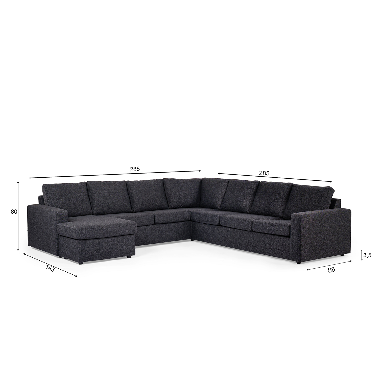 Hoekbank Becca | Antraciet Dortmund | Longchair L+R