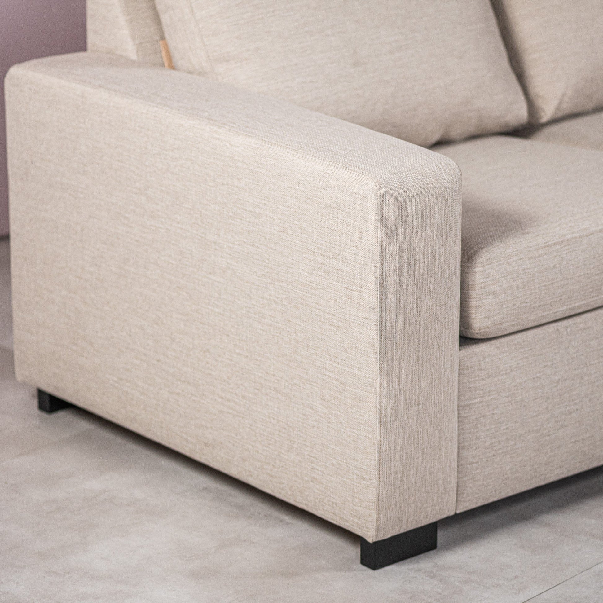 Maak kennis met onze 3-zits Hoekbank Clinten in Beige Inari, een perfecte mix van stijl en comfort.