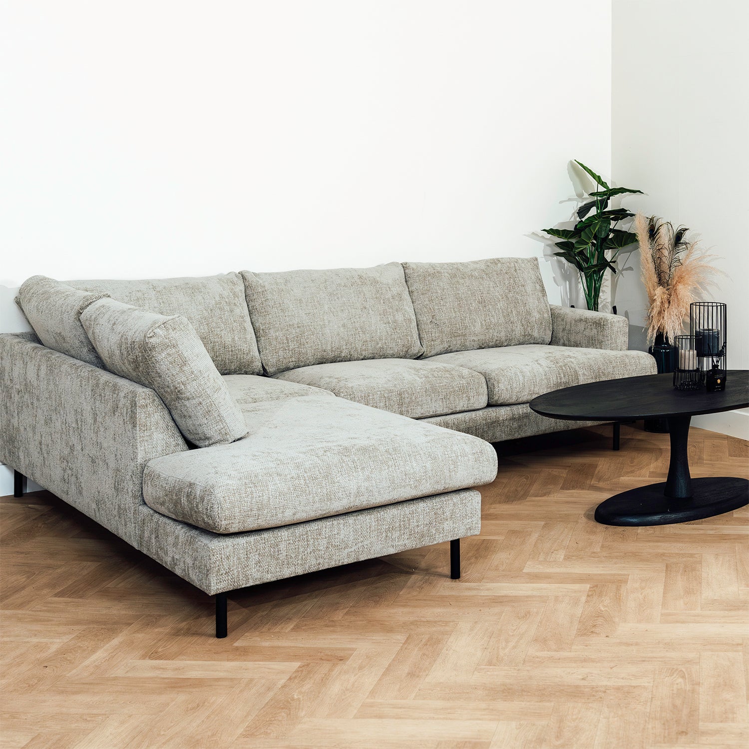 Met de Hoekbank Elize creëer je een gezellige en stijlvolle zithoek die uitnodigt om te ontspannen. Combineer hem met een elegante salontafel of een vloerkleed om je woonkamer compleet te maken.