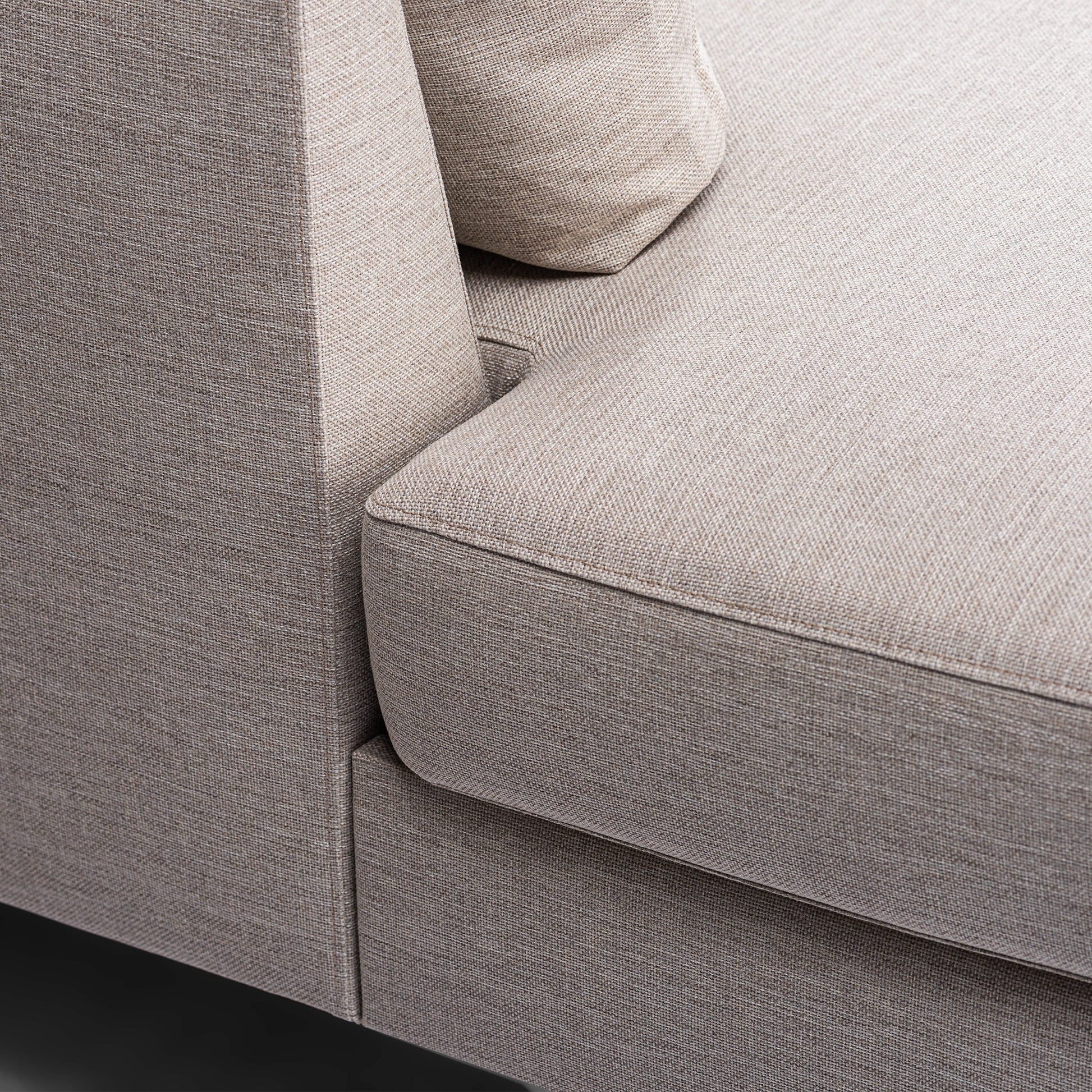 Maak kennis met onze 3-zits Hoekbank Emma in Beige Inari met zwarte poten, een perfecte mix van stijl en comfort.