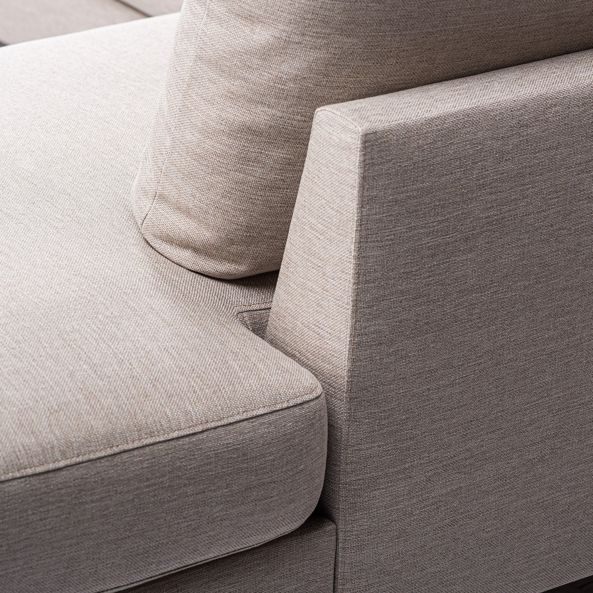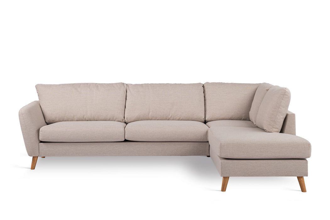 Maak kennis met onze 3-zits Hoekbank Juul in Beige Inari met eiken poten, een perfecte mix van stijl en comfort.
