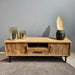 Tv meubel Jayden is een stoer en trendy tv meubel uitgevoerd in prachtig mangohout. Dit mangohouten tv meubel is gemaakt van massief mangohout en heeft een strak zwart metalen onderstel, waardoor dit tv meubel perfect past binnen jouw interieur.