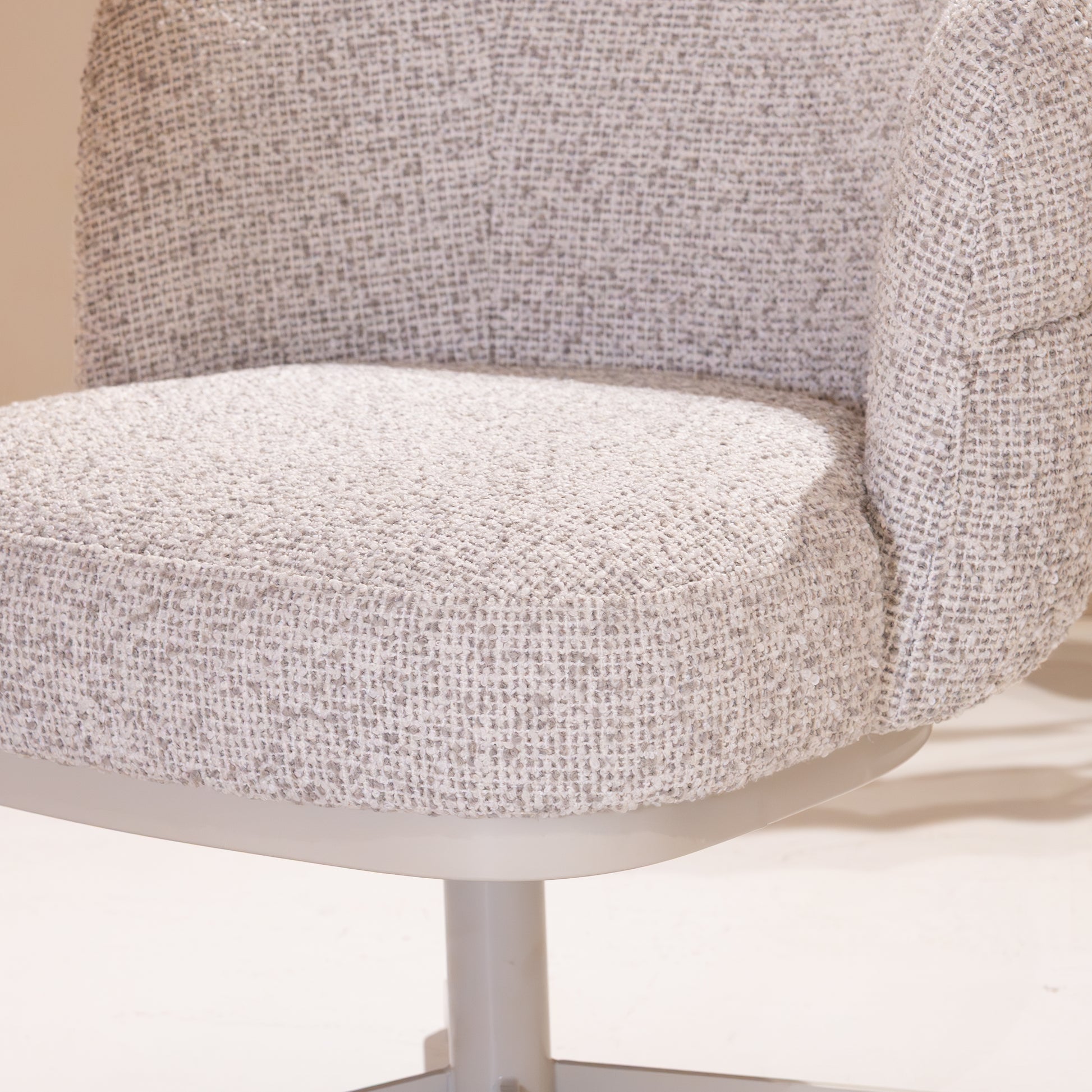 Onderstel: Beige metalen draaipoot met 360° rotatie, voor flexibiliteit en gemak