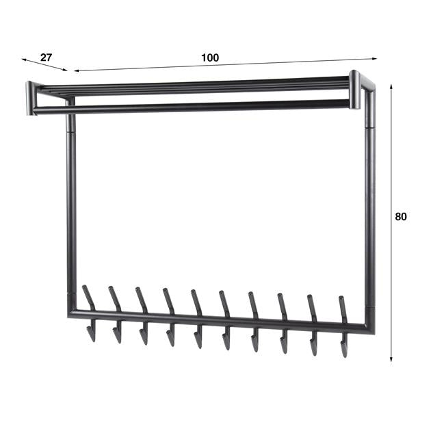 Functioneel ingedeeld: Voorzien van meerdere stevige haken en een praktische legplank, zodat je zowel kleding als accessoires netjes kunt organiseren.