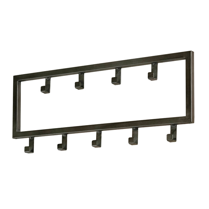 Deze kapstok is uitgevoerd in grijs gepoedercoat staal. In totaal is dit model voorzien van 9 haken. Aangezien de haken schuin boven elkaar zijn bevestigd, kunnen jassen gemakkelijker en wat meer verspreid worden opgehangen. verder is de kapstok voorzien van twee bevestigingsogen aan de achterzijde, zodat hij eenvoudig te monteren is.